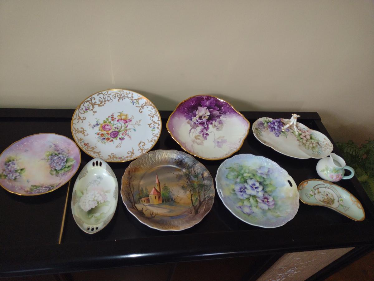 Collection of China Plates- Mostly Hand Painted- Assorted Sizes and Designs