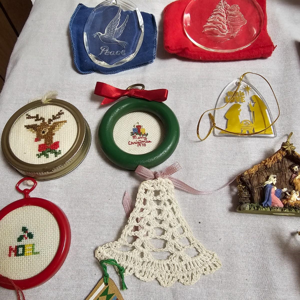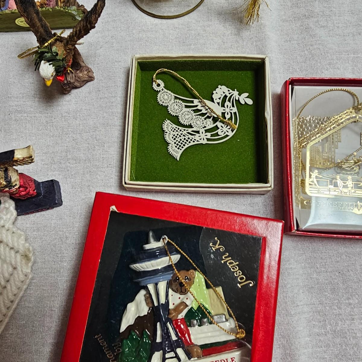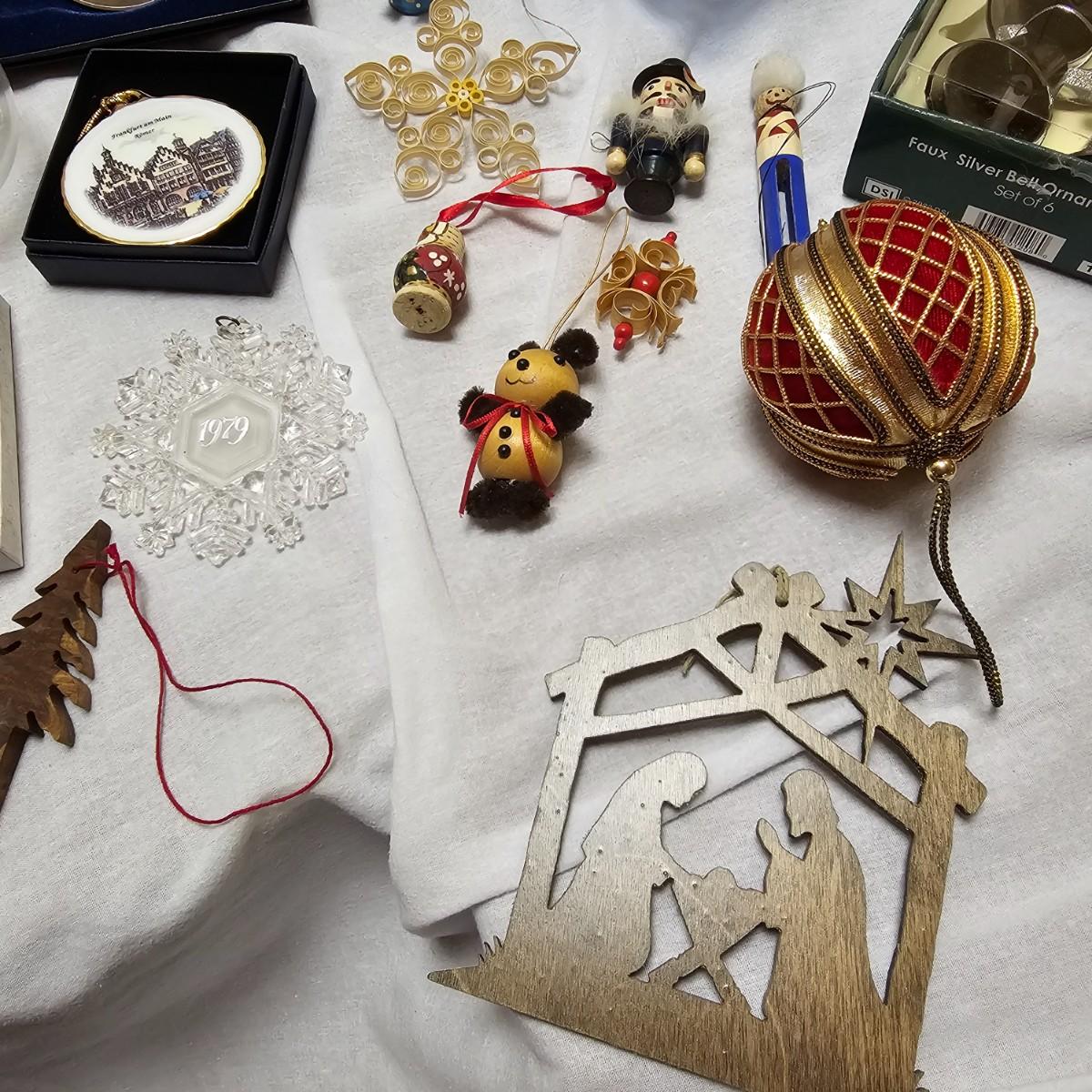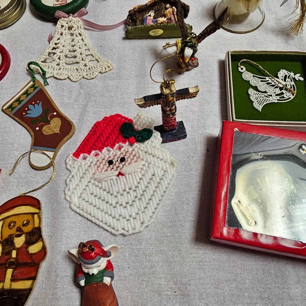 Lots and lots of unique ornaments. Some are older handmade style, painted, crochet, needlework. Others are metal, brass, plastic, resin, ceramic and more. Several destination commemoratives: the Capitol, Biltmore, Grove Park, Williamsburg, others. Also includes a large tub of plastic outdoor safe ornaments in a variety of shapes and colors. Includes a few vintage glass ornaments. See photos for details. Includes storage bins, local pickup only.