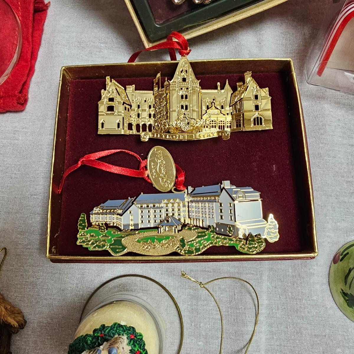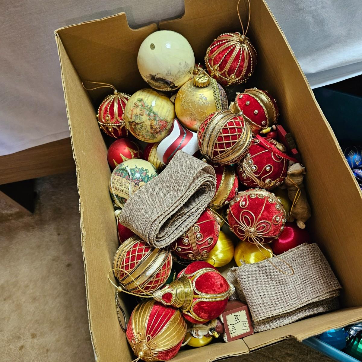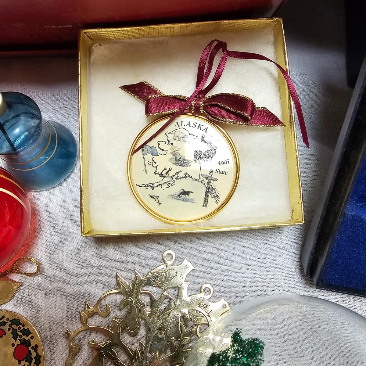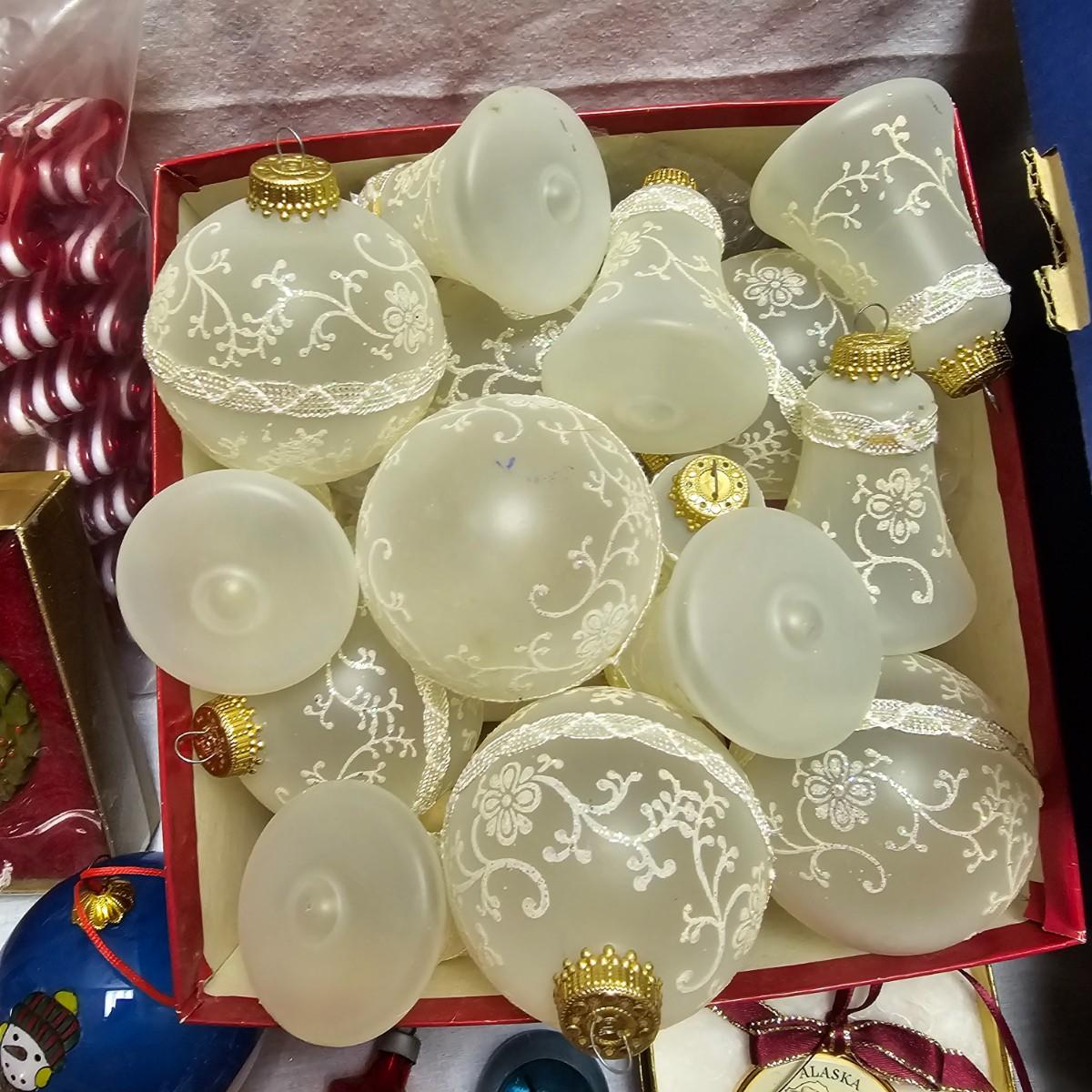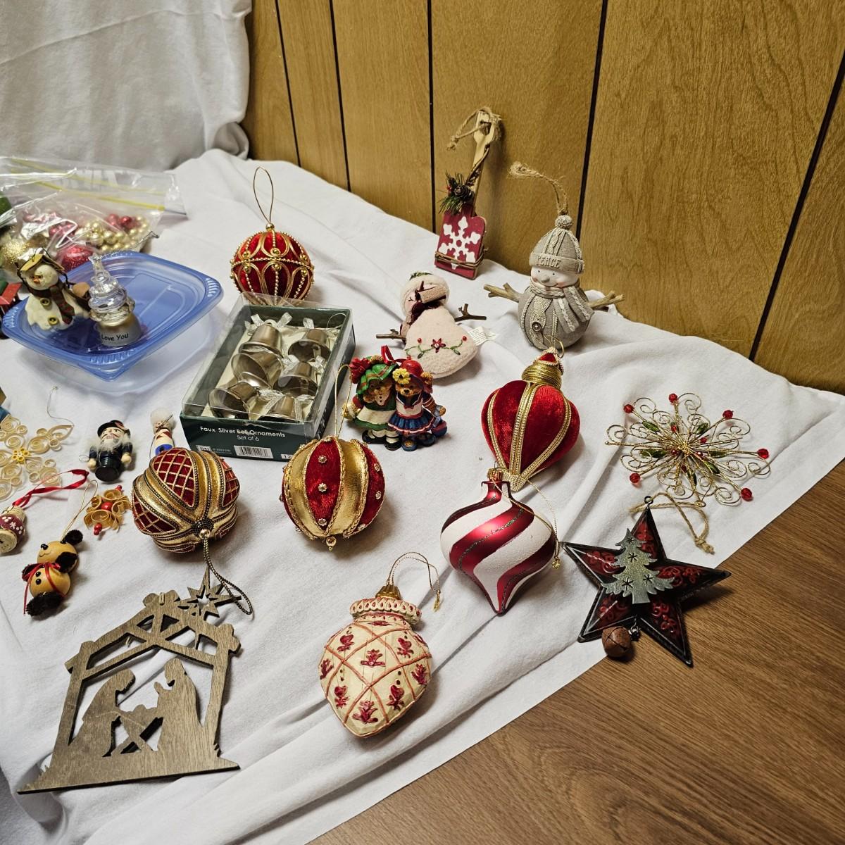Lots and lots of unique ornaments. Some are older handmade style, painted, crochet, needlework. Others are metal, brass, plastic, resin, ceramic and more. Several destination commemoratives: the Capitol, Biltmore, Grove Park, Williamsburg, others. Also includes a large tub of plastic outdoor safe ornaments in a variety of shapes and colors. Includes a few vintage glass ornaments. See photos for details. Includes storage bins, local pickup only.