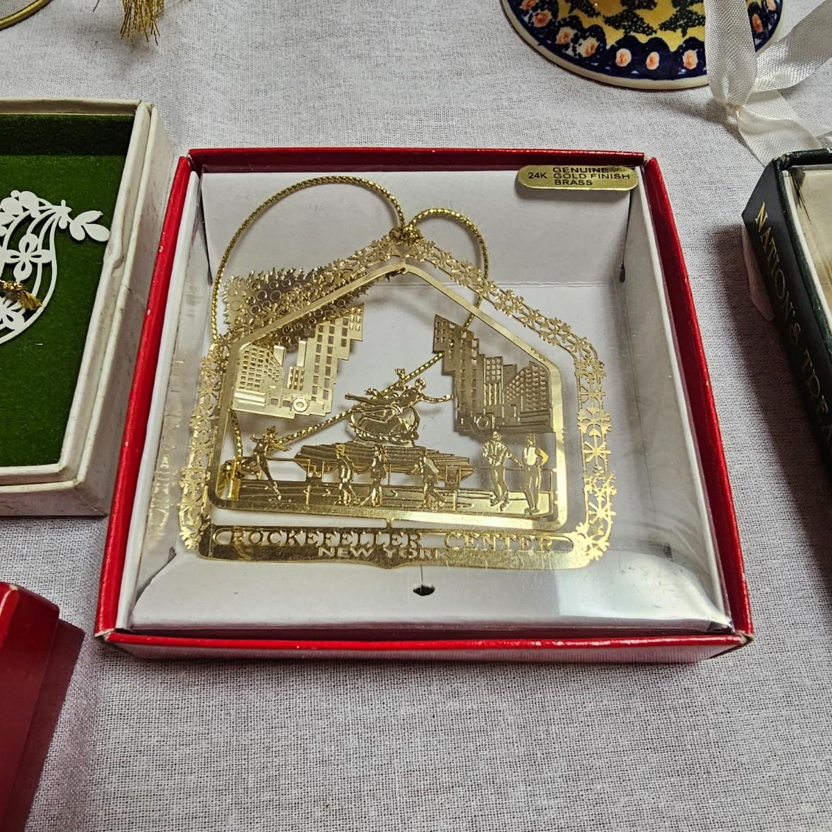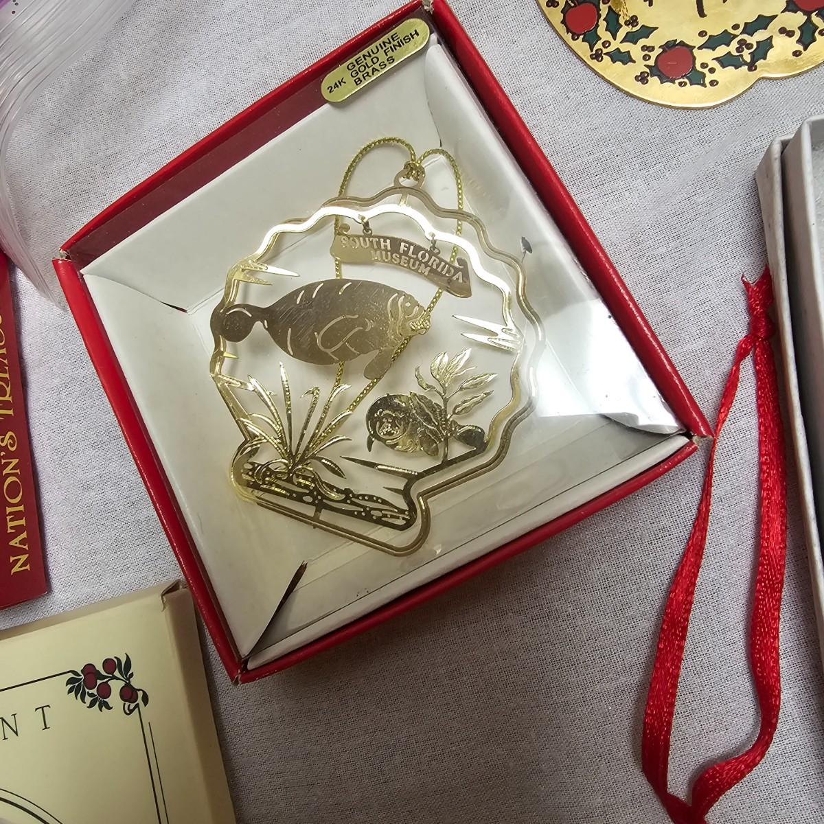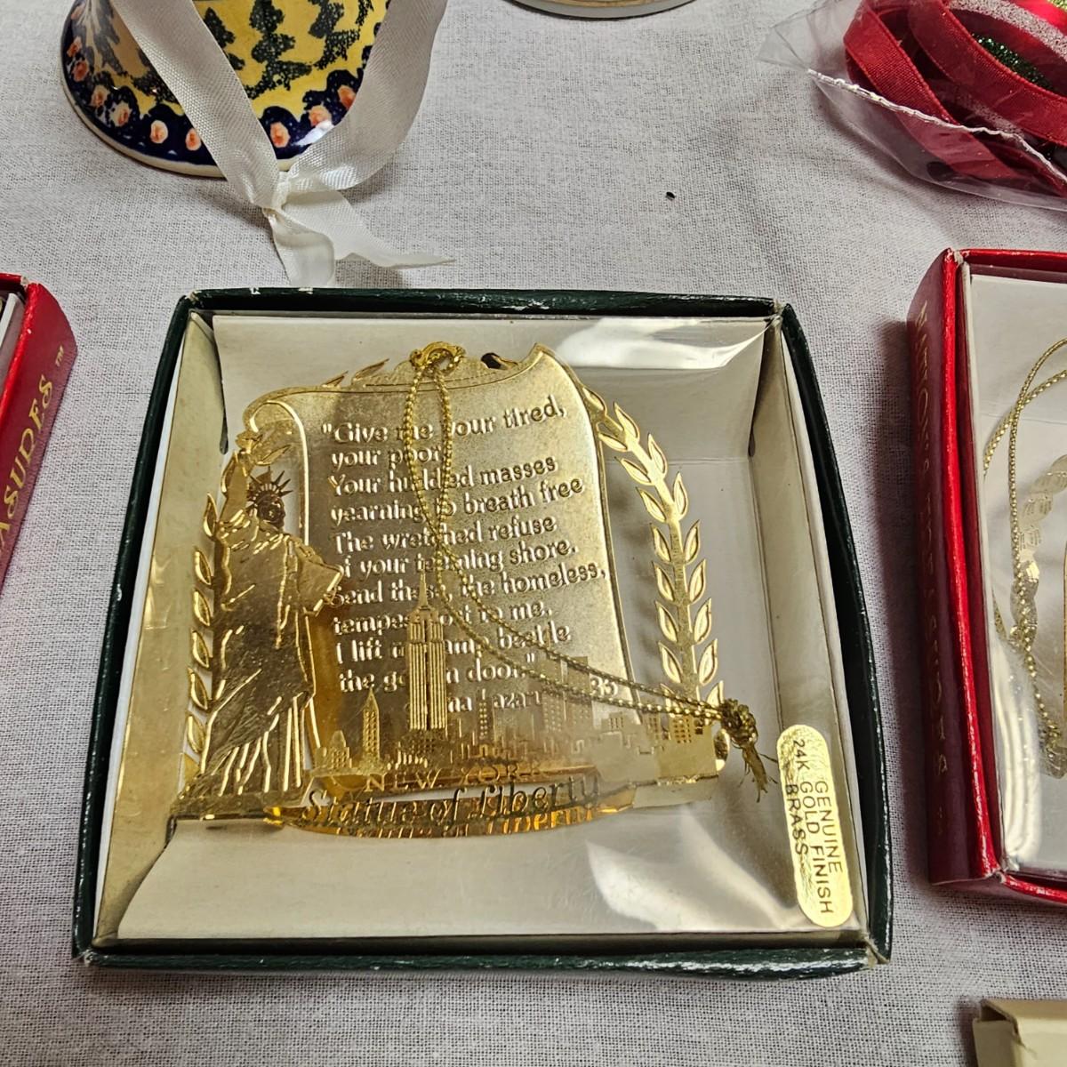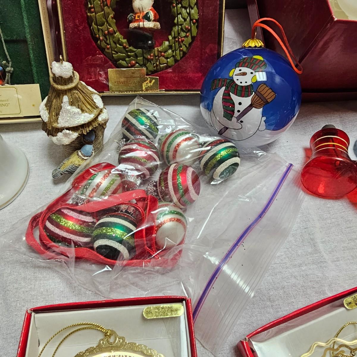 Lots and lots of unique ornaments. Some are older handmade style, painted, crochet, needlework. Others are metal, brass, plastic, resin, ceramic and more. Several destination commemoratives: the Capitol, Biltmore, Grove Park, Williamsburg, others. Also includes a large tub of plastic outdoor safe ornaments in a variety of shapes and colors. Includes a few vintage glass ornaments. See photos for details. Includes storage bins, local pickup only.