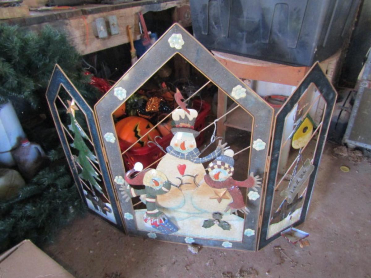 Collection of Christmas/Winter Decor- Includes very nice metal fireplace screen
