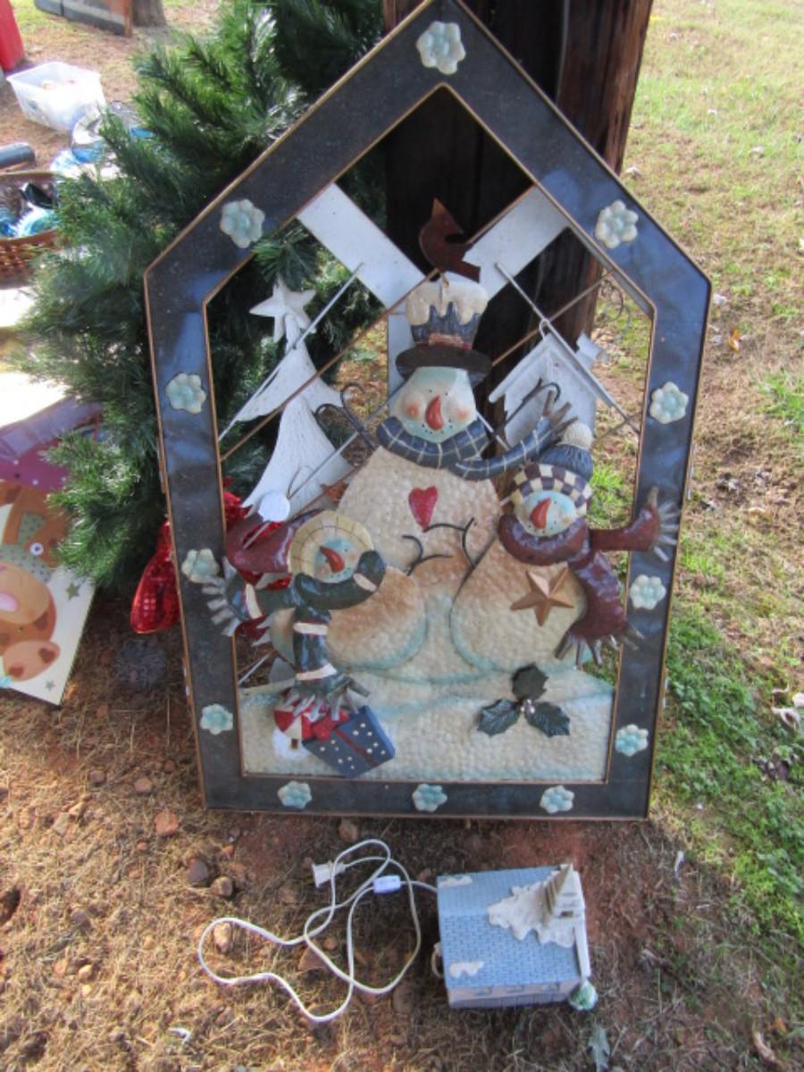 Collection of Christmas/Winter Decor. Green wreath is large-36". Includes very nice metal fireplace screen- approx 41".