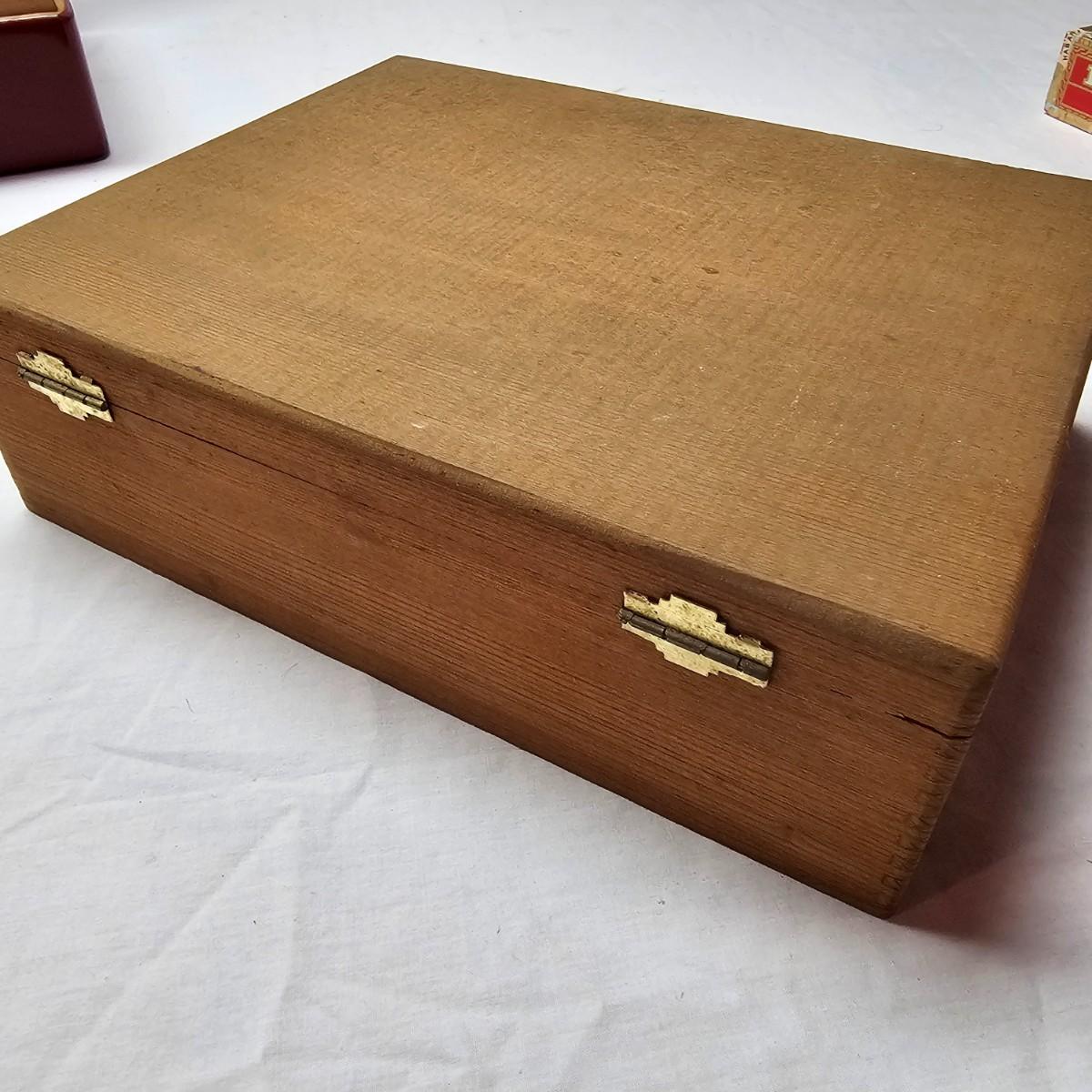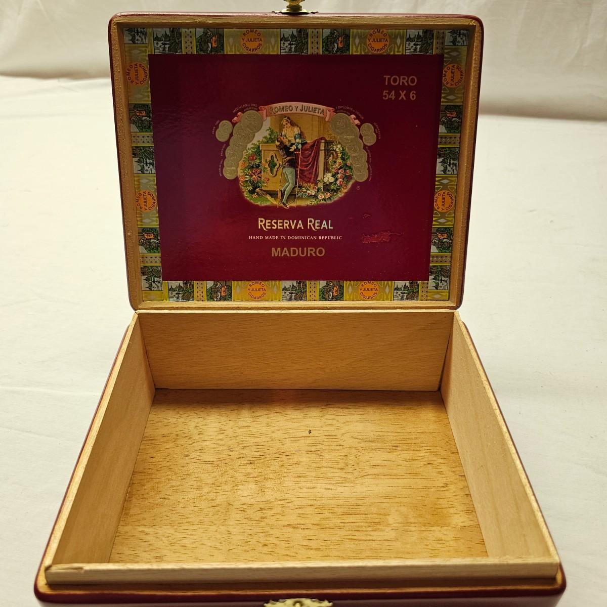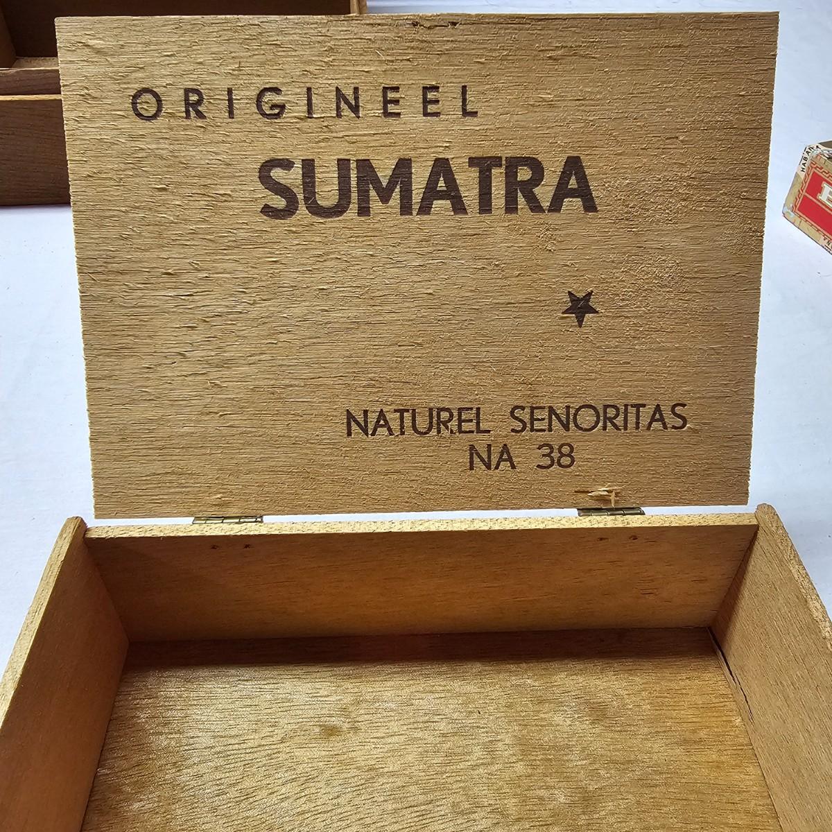 Six unique cigar and cigarette boxes with original advertising and some with duty stamps. Bolivar, Romeo & Julieta, Sumatra and others. The two Chesterfield items are similiar and are metal tins, 5.5" x 4.5" x .75"H. All other items are wood or paper. The Bolivar box is 8.25" x 5.5" x 1.5"H and the Reserva Maduro measures 8.5" x 7" x 3"H. See photos for details. Shipping available.