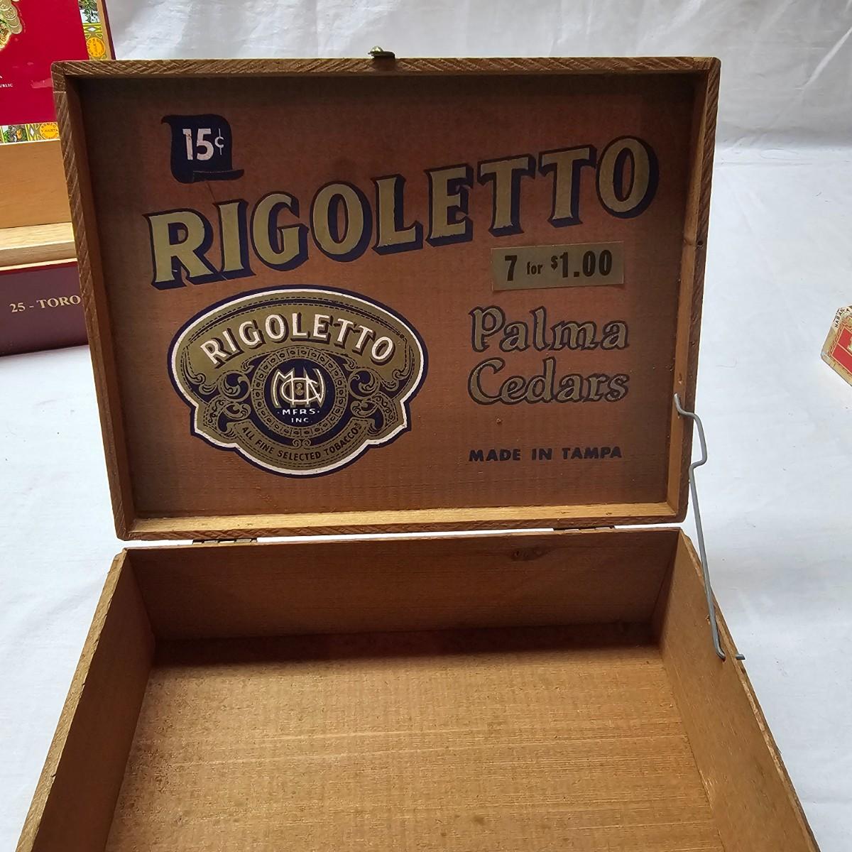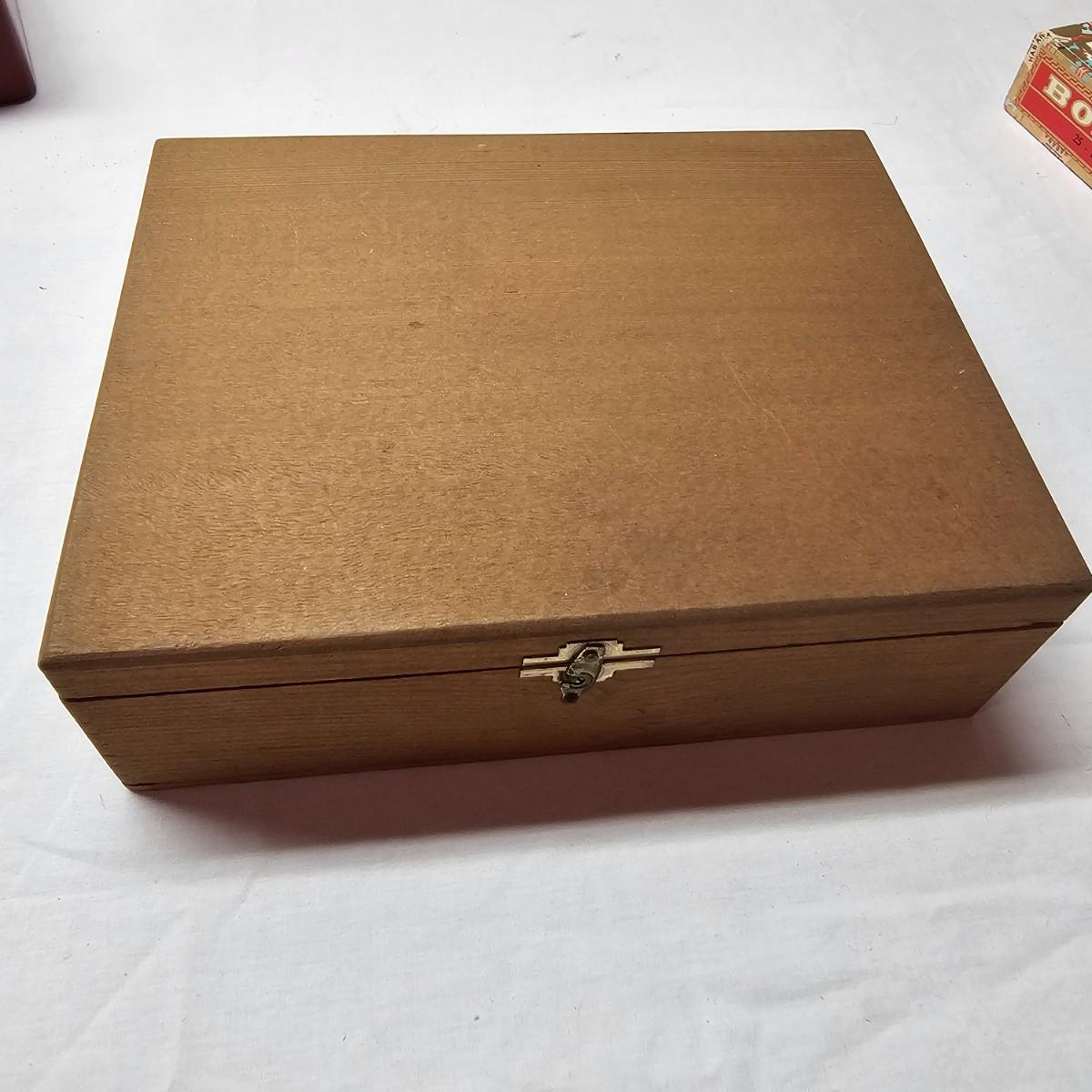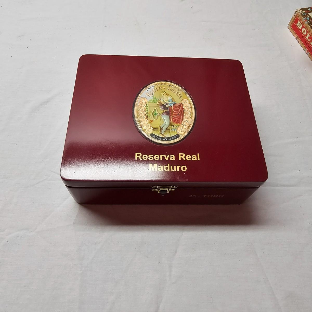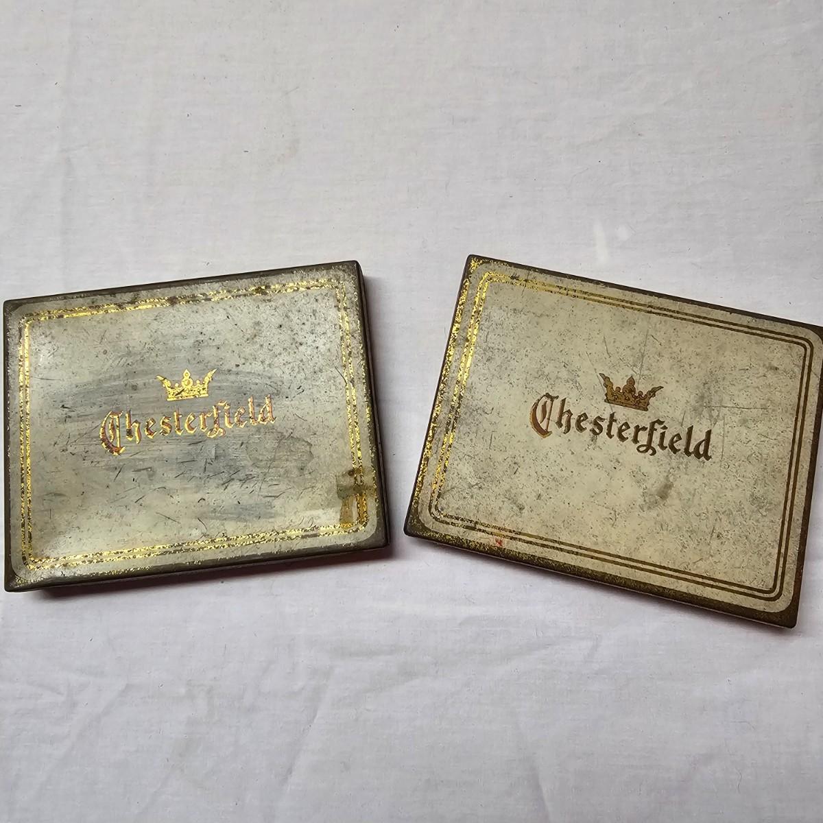 Six unique cigar and cigarette boxes with original advertising and some with duty stamps. Bolivar, Romeo & Julieta, Sumatra and others. The two Chesterfield items are similiar and are metal tins, 5.5" x 4.5" x .75"H. All other items are wood or paper. The Bolivar box is 8.25" x 5.5" x 1.5"H and the Reserva Maduro measures 8.5" x 7" x 3"H. See photos for details. Shipping available.