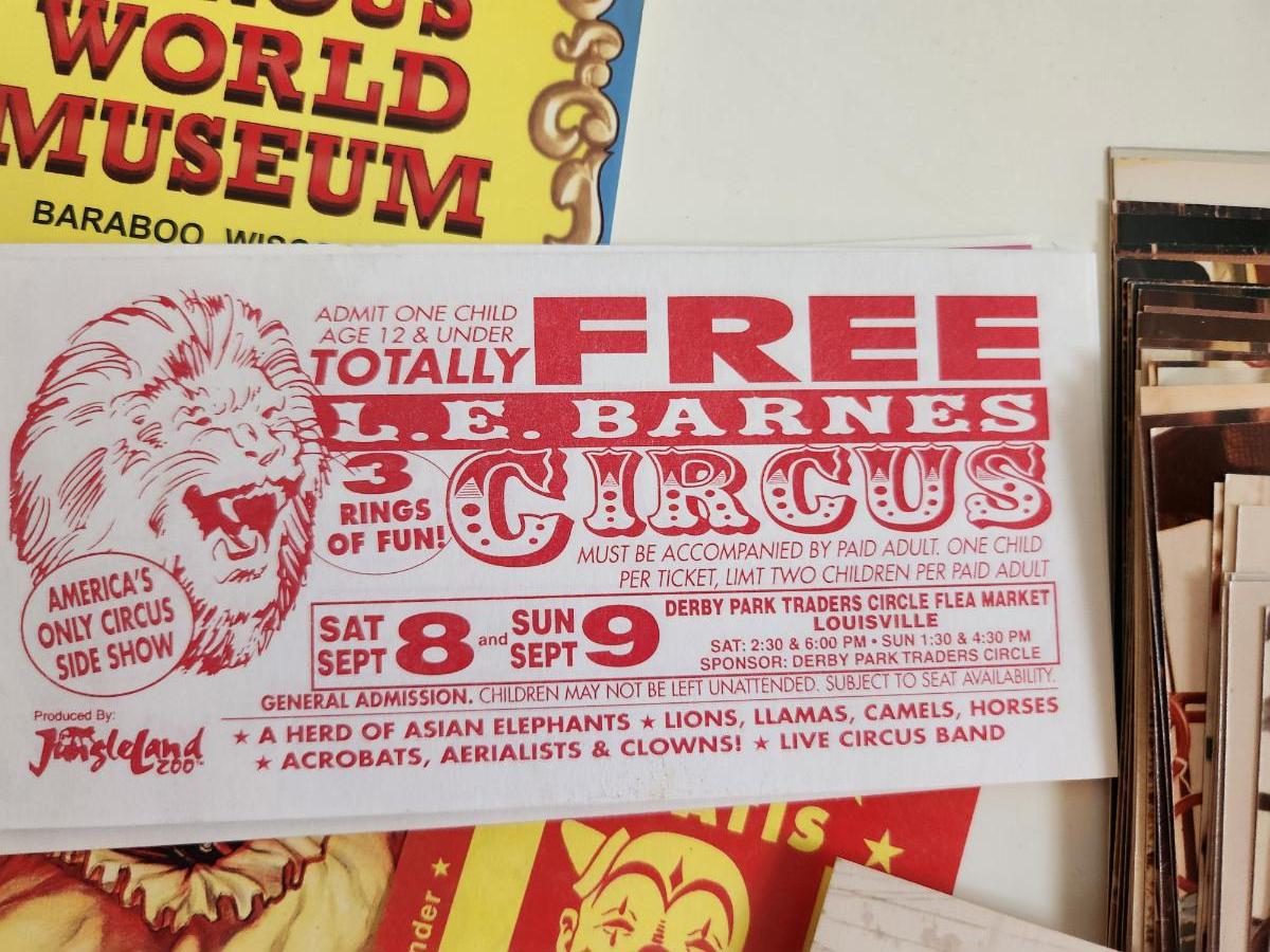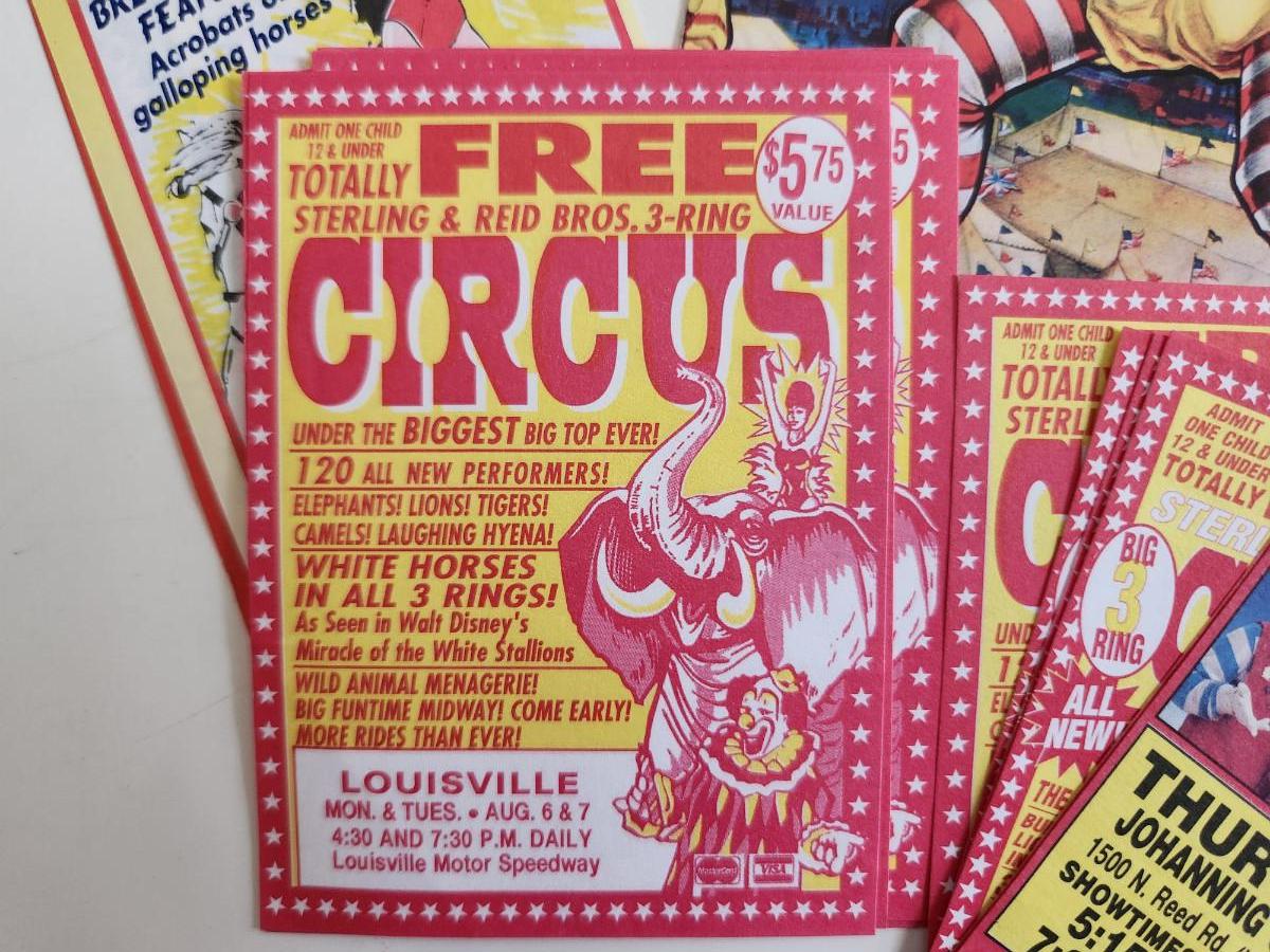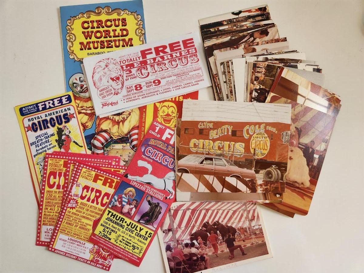 This auction lot is for a Collection of Circus Ephemera. This collection includes a big group of about 60 original amateur photographs of various circus acts and animals taken by an local enthusiast. Each photo has a description written on its verso. Also includes a few tickets and various advertising items.