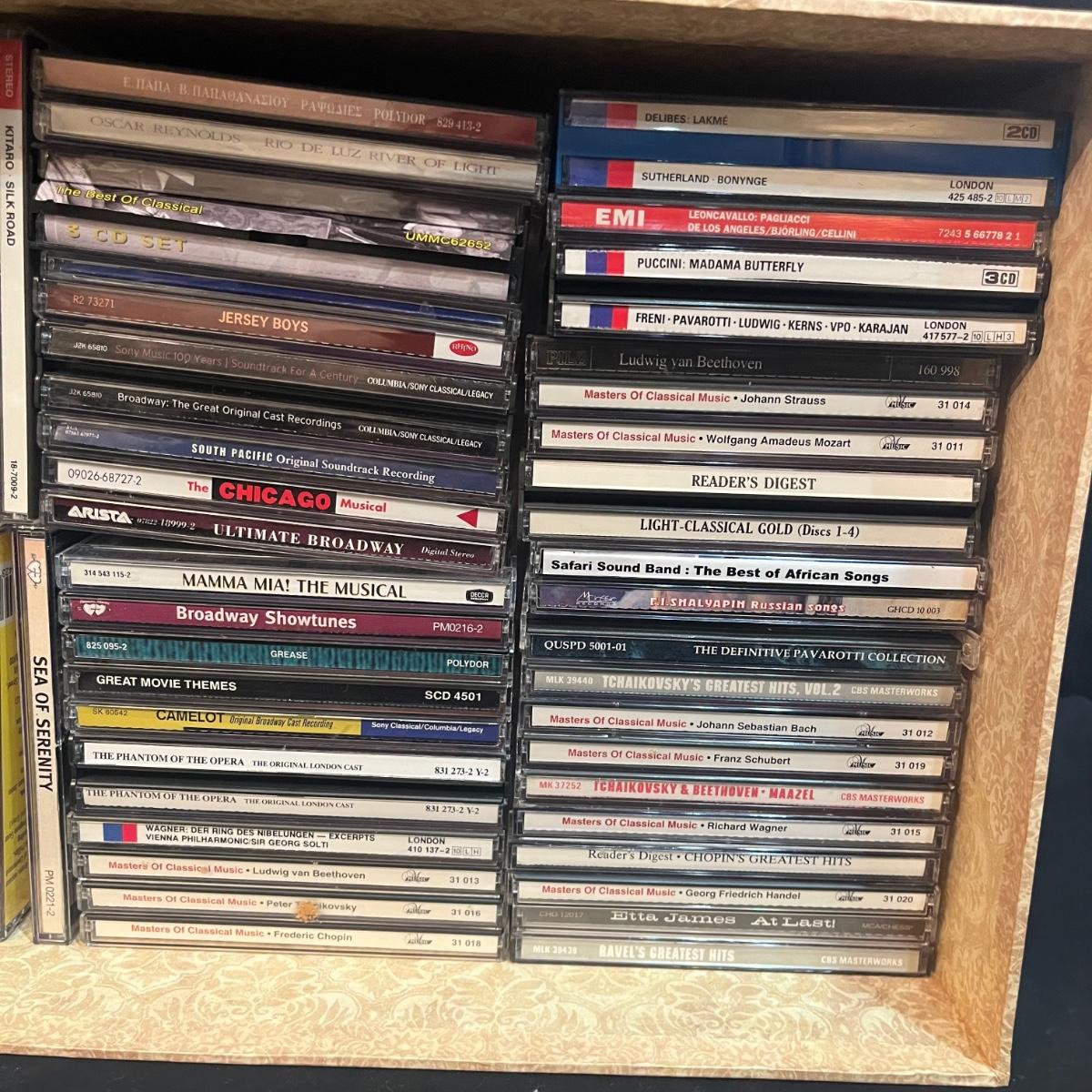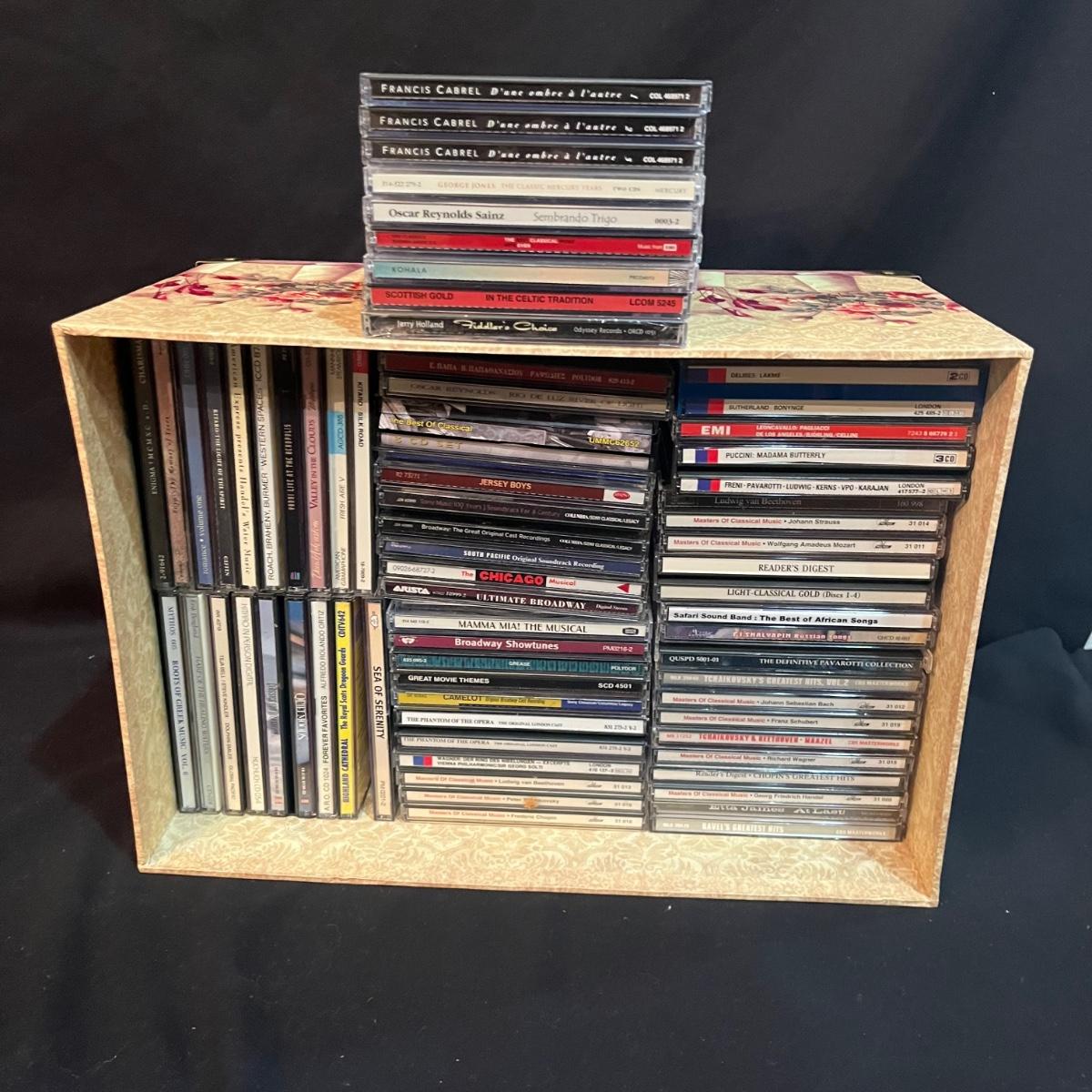 Lot contains over 60 CDs with most of them being in the classical genre. Artists include Chopin, Oscar Reynolds Sainz, Jerry Holland and a selection of soundtracks. Box is included.