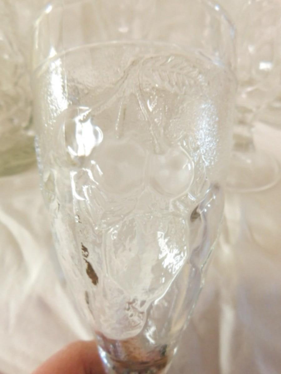 Collection of Clear Fruit-Themed Drinking Glasses Various Styles and Sizes