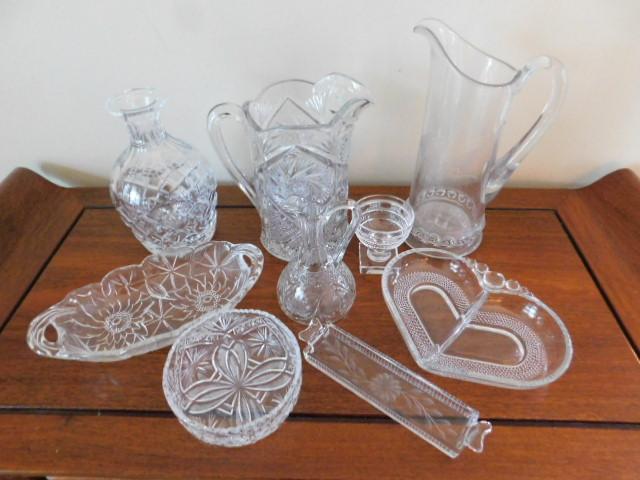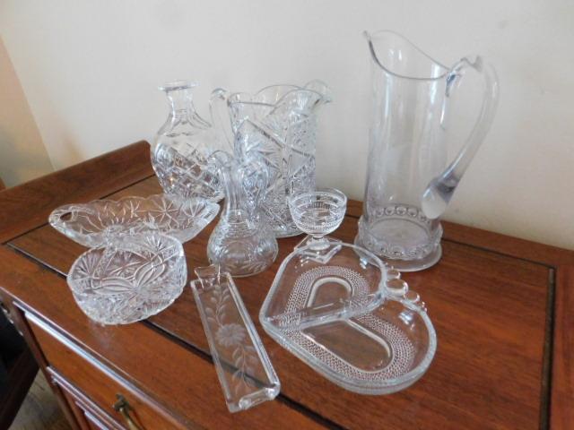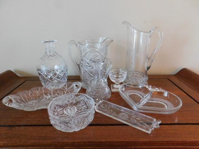 Collection of Clear Glass and Crystal Home Decor and Entertaiment Items