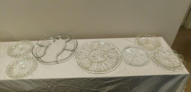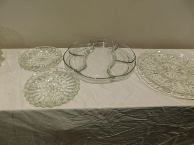 Collection of Clear Glass Relish Trays of Different Sizes and Shapes