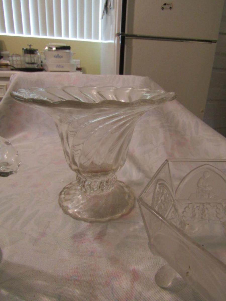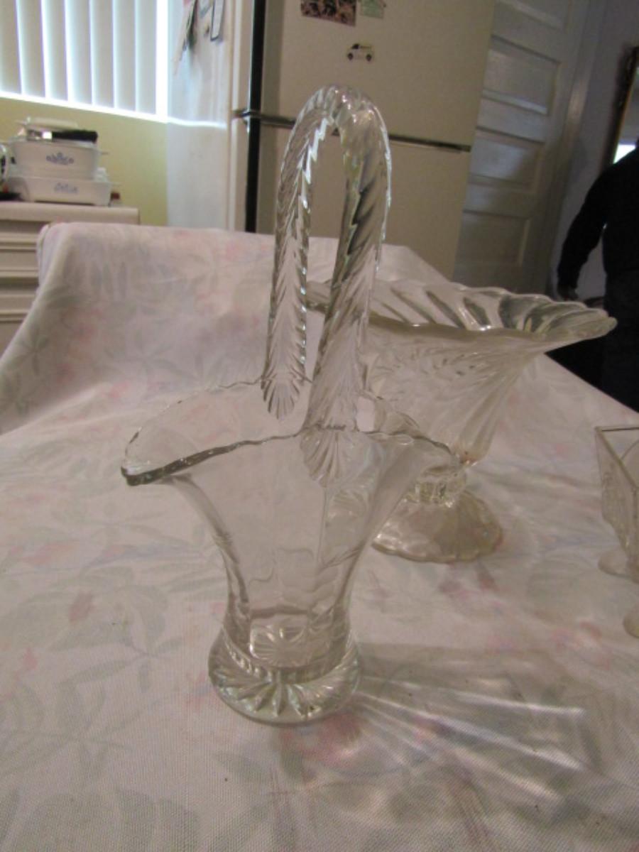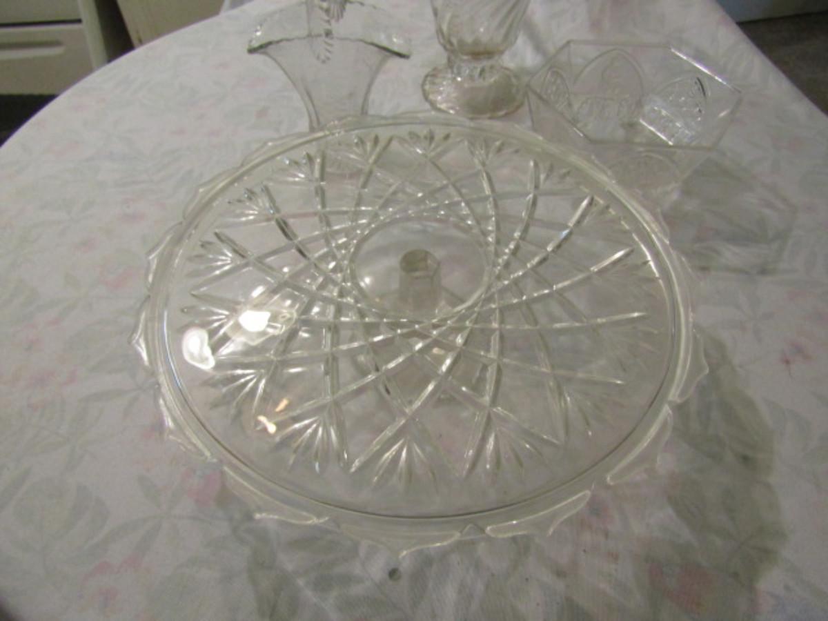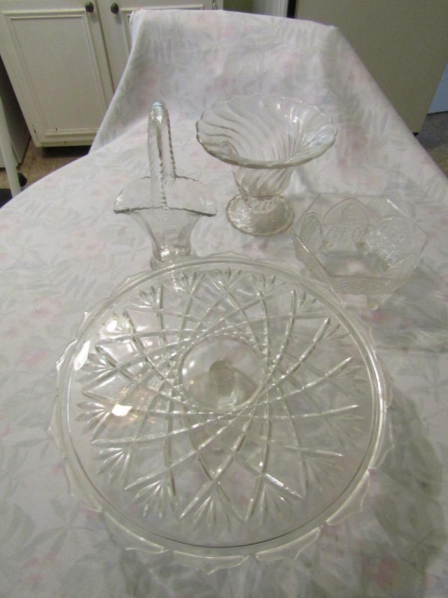 Collection of Clear Glassware- Cake Pedestal, Vases, Bowls, etc.