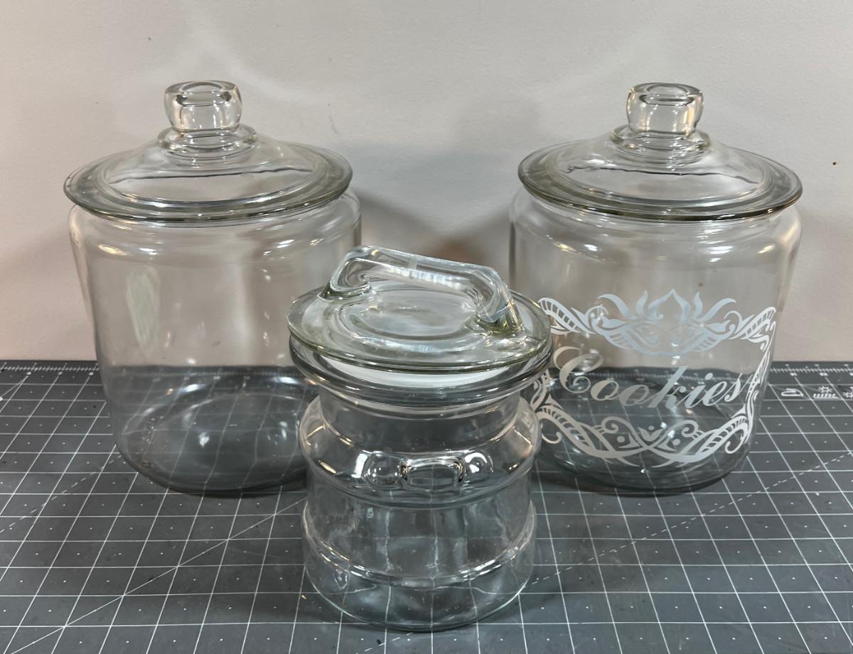 One is Labeled Cookies. Good usable condition. 2 bigger ones are about a Gallon ea.