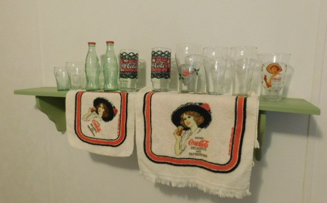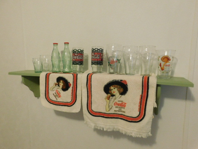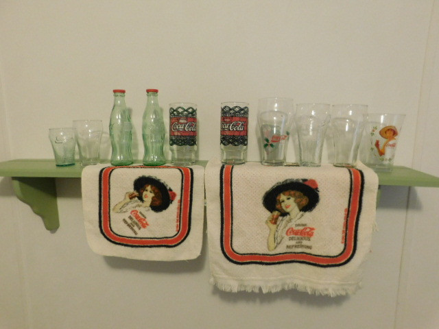 Collection of Coca Cola Items Including Drinking Glasses and Hand Towels