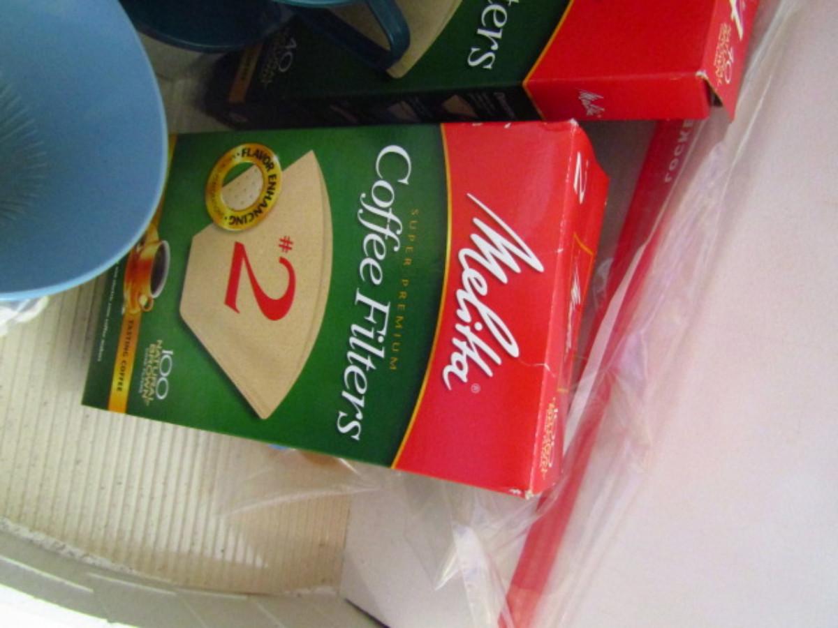 Collection of Coffee Related Items- Maker, Grinder, Carafe, and Assorted Filters and Accessories