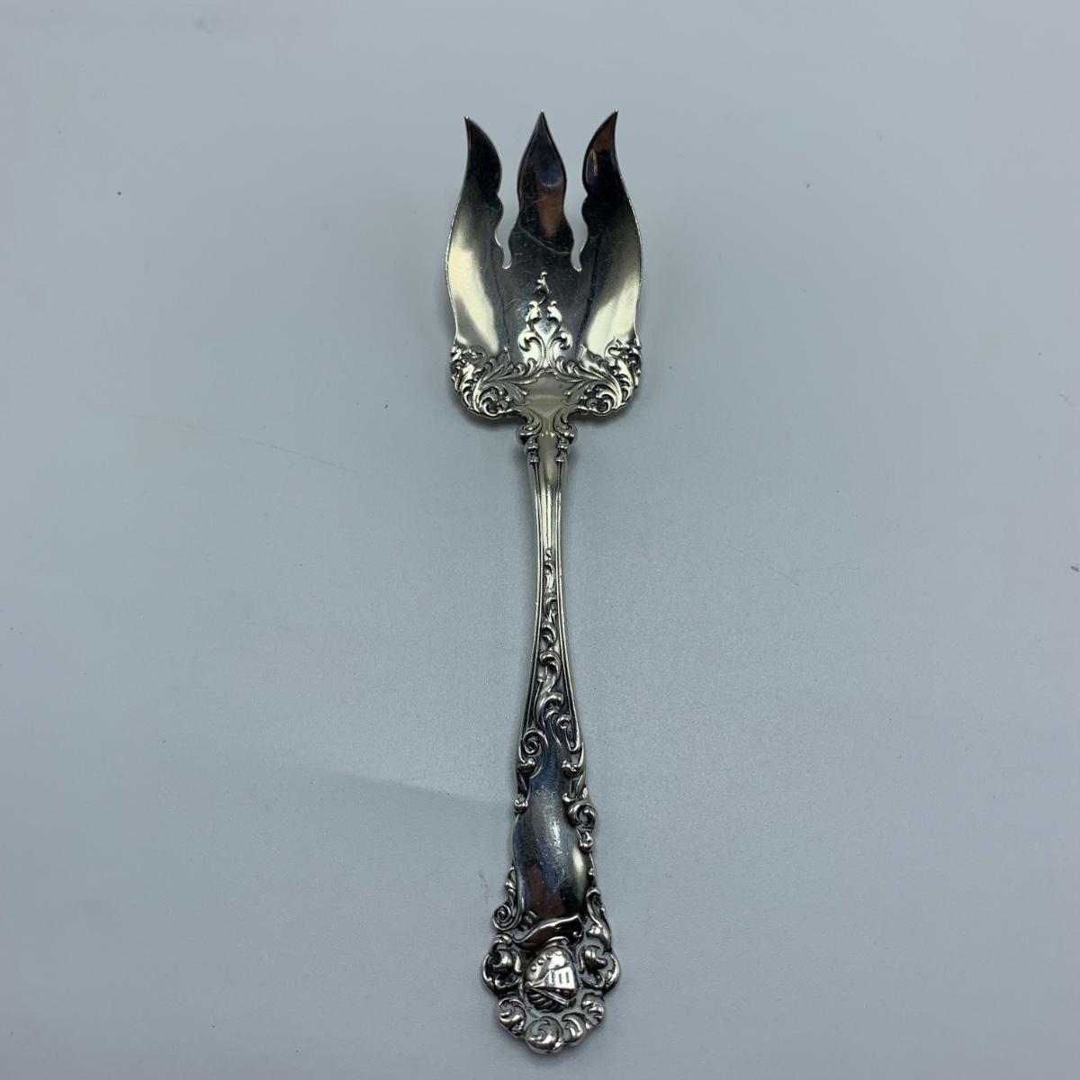Collection of 12 utensils includes sterling silver tongs, forks, and small spoons. Lot also includes a selection of non-Sterling coffee spoons and small cheese server. All sales are final. No returns or refunds. Please bid accordingly.