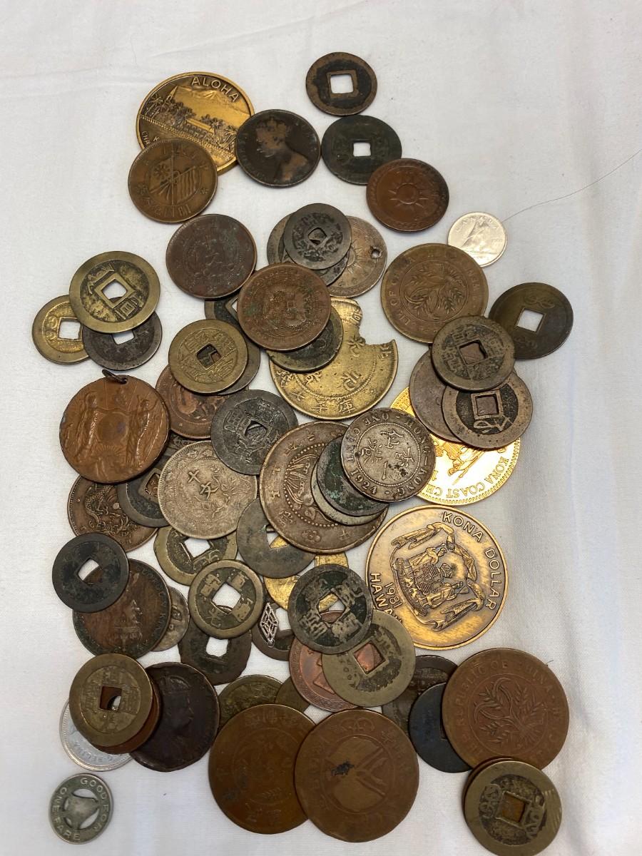*Collection of Foreign Currency & Tokens. Mostly Chinese old dynasty, Hawaiian tokens and etc