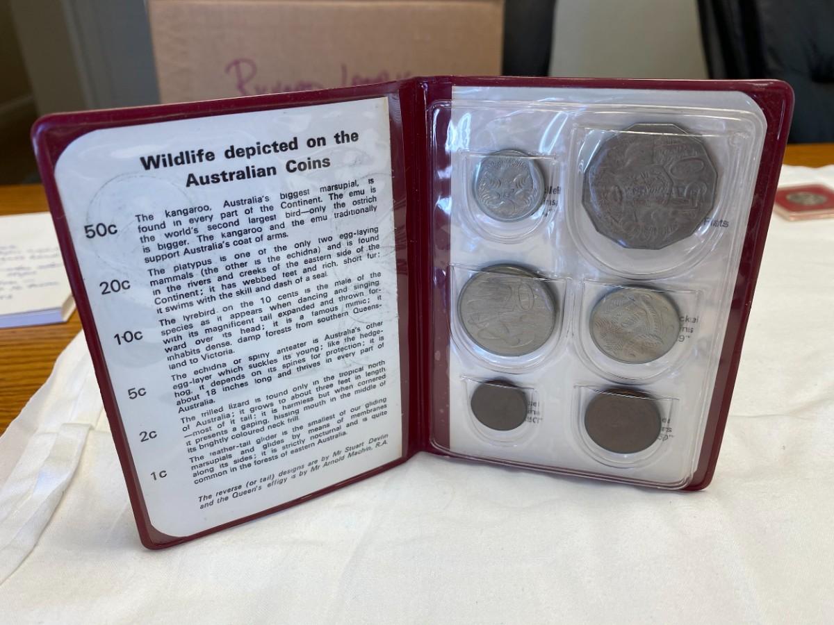 *Royal Australian mint wildlife coin set. Including: 50¢ kangaroo, 20¢ platypus, 10¢ lyrebird, 5¢ echidna, 2¢ trilled lizard, and 1¢ feather-tail glider nickel and bronze coins.