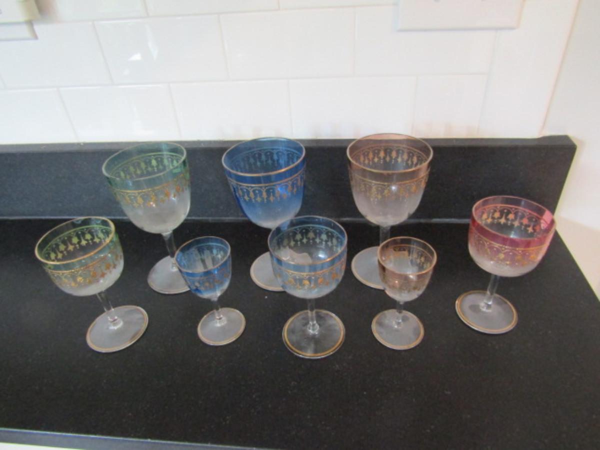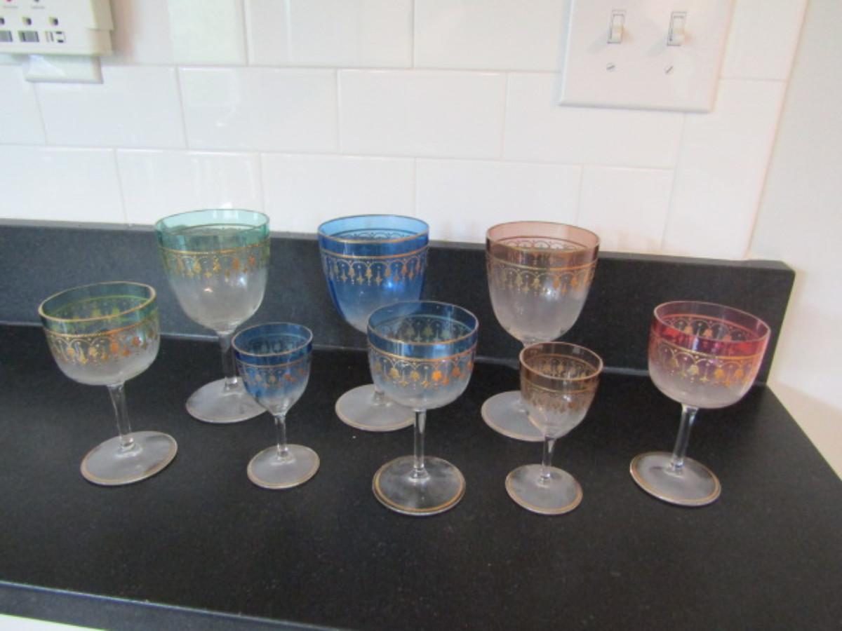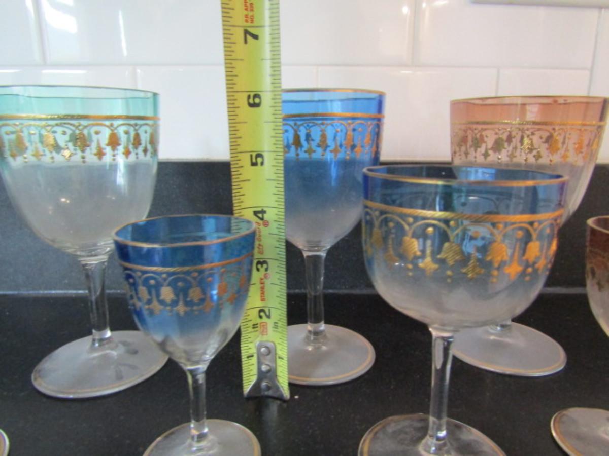 Collection of Colored Crystal Wine and Cordial Glasses