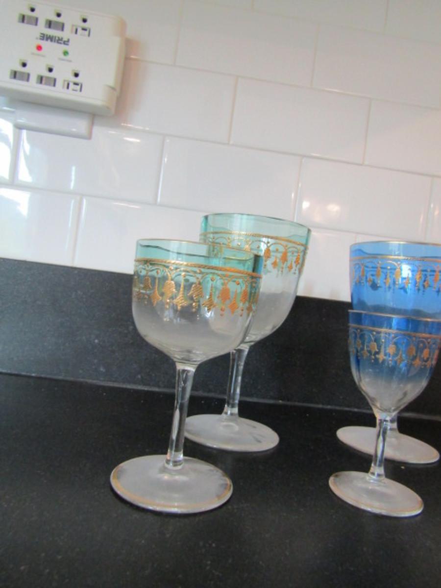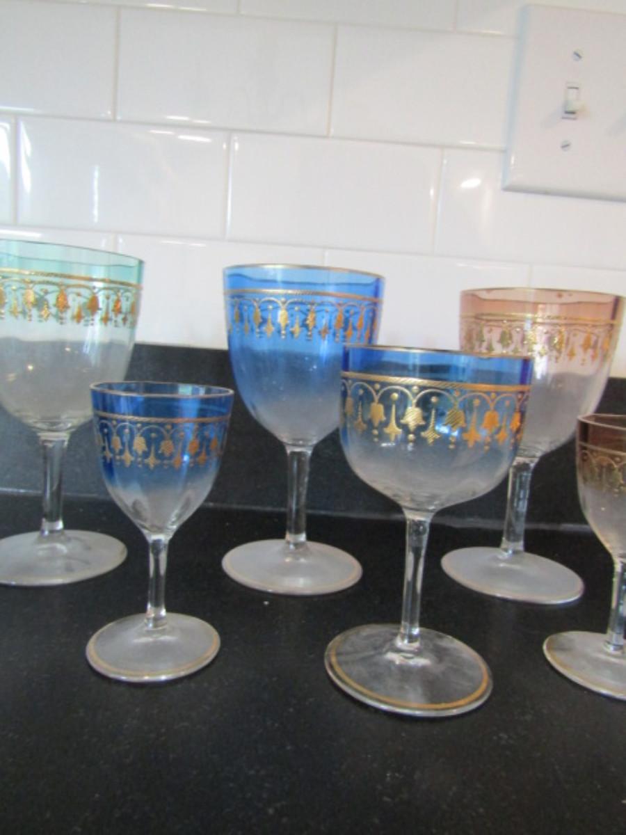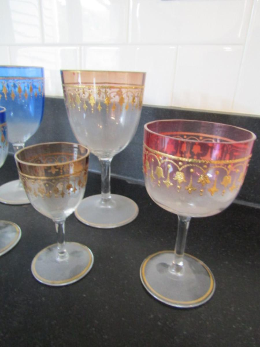 Collection of Colored Crystal Wine and Cordial Glasses