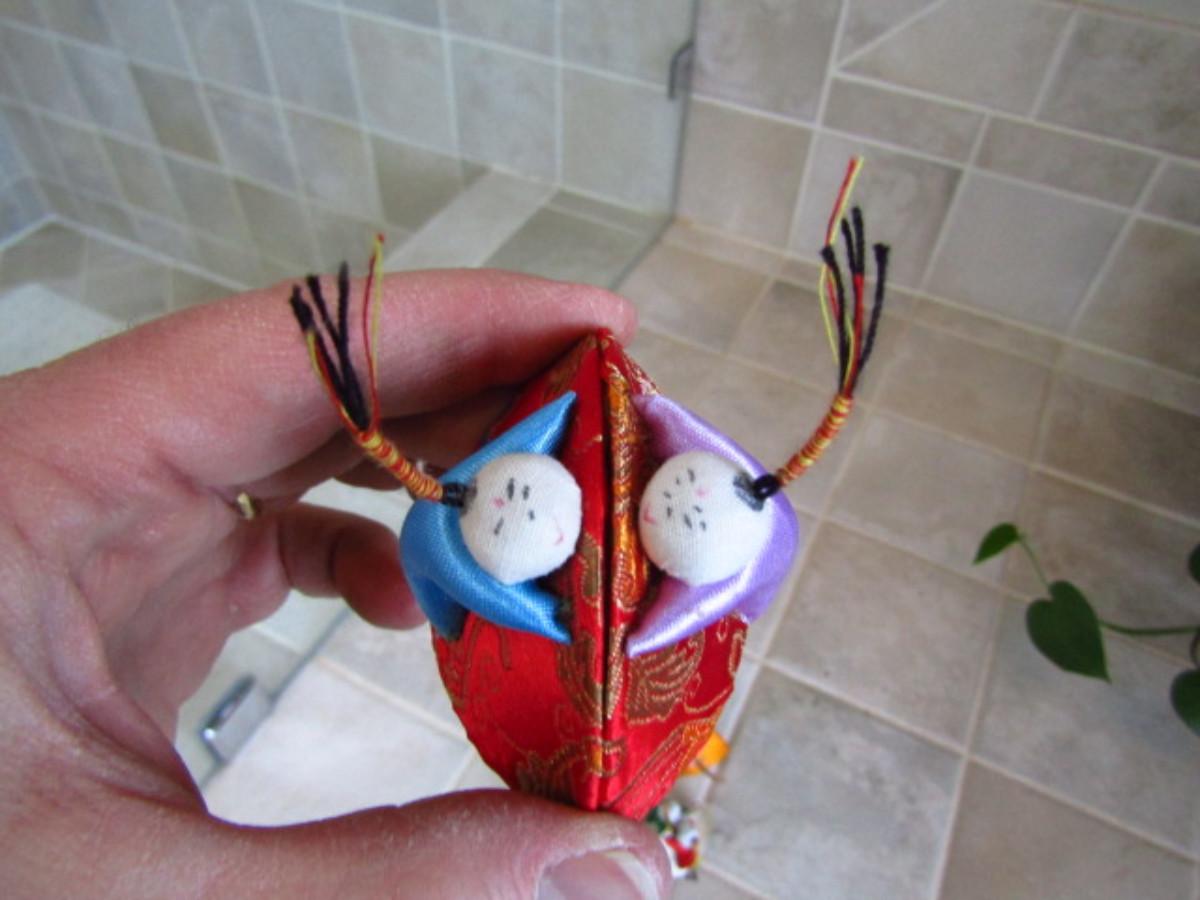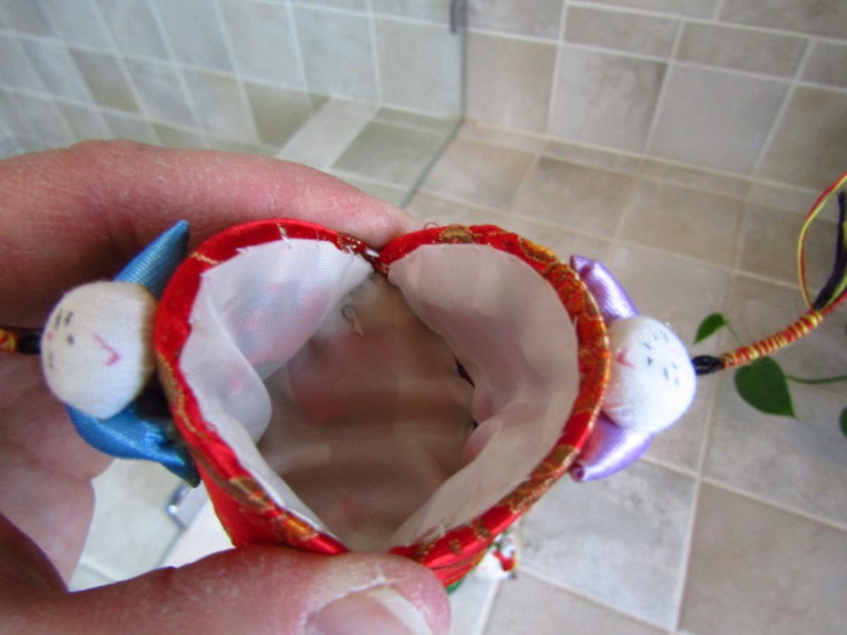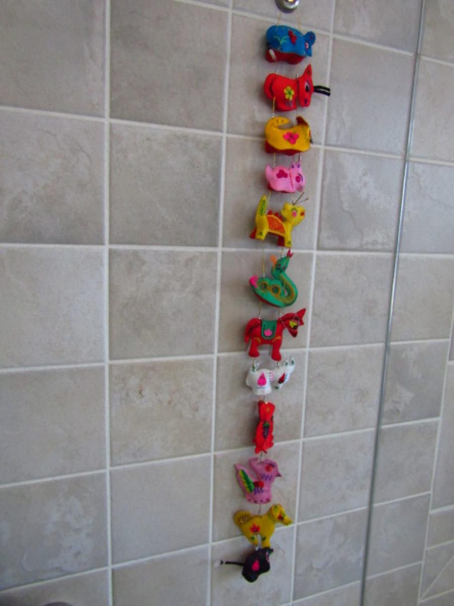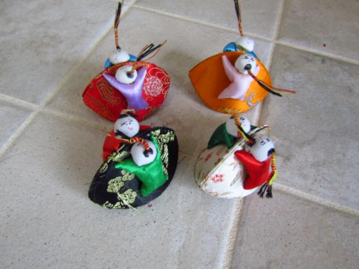 Collection of Colorful Home Decor and Change Purses (MBR). Two strands of colorful sewn figures and four change purses.