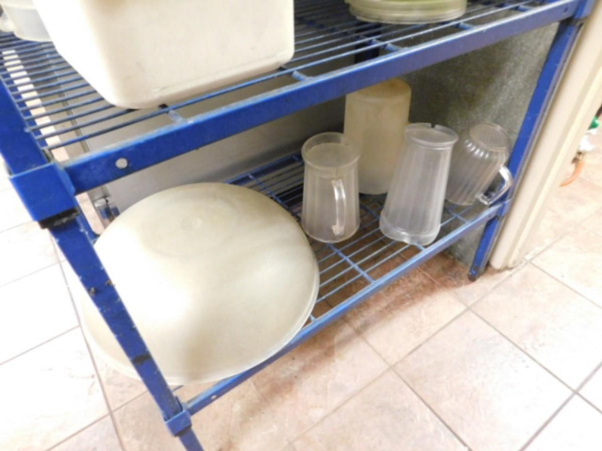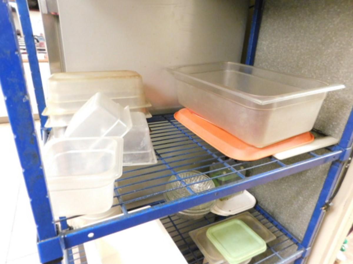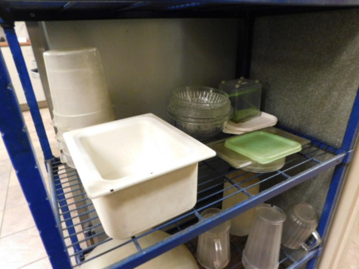 Collection of Commercial Kitchen Plastic Storage Containers and Serving Pieces (Shelf Not Included)