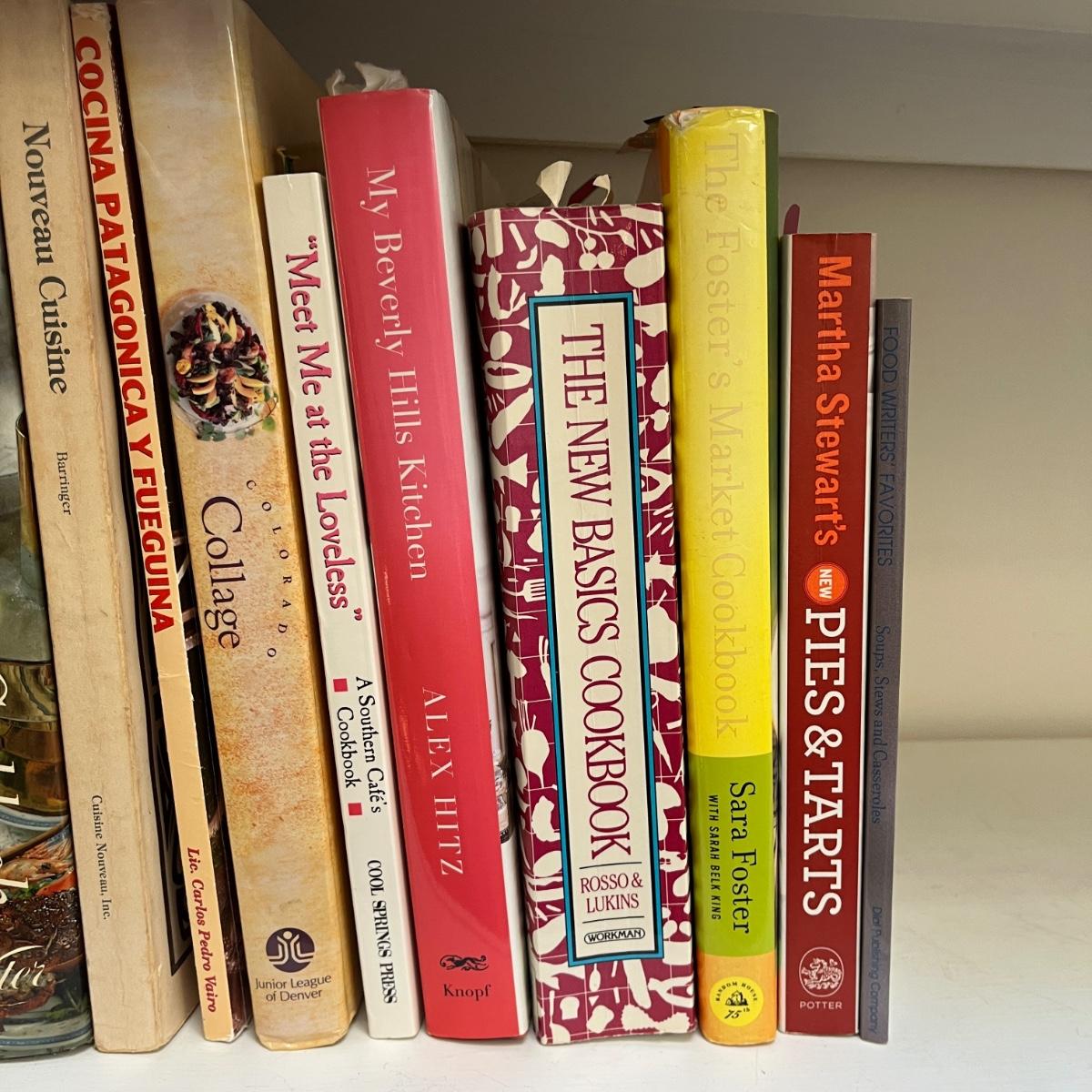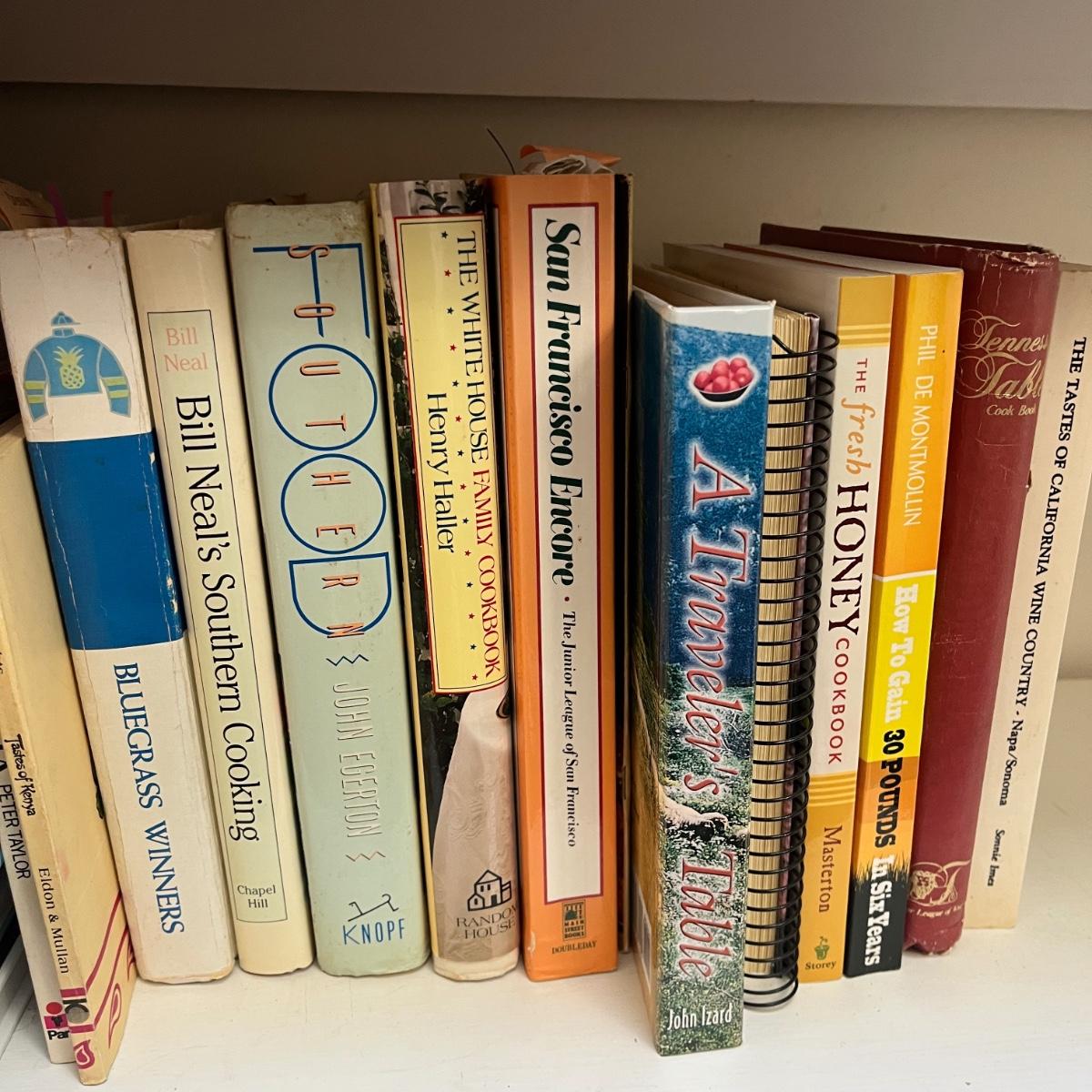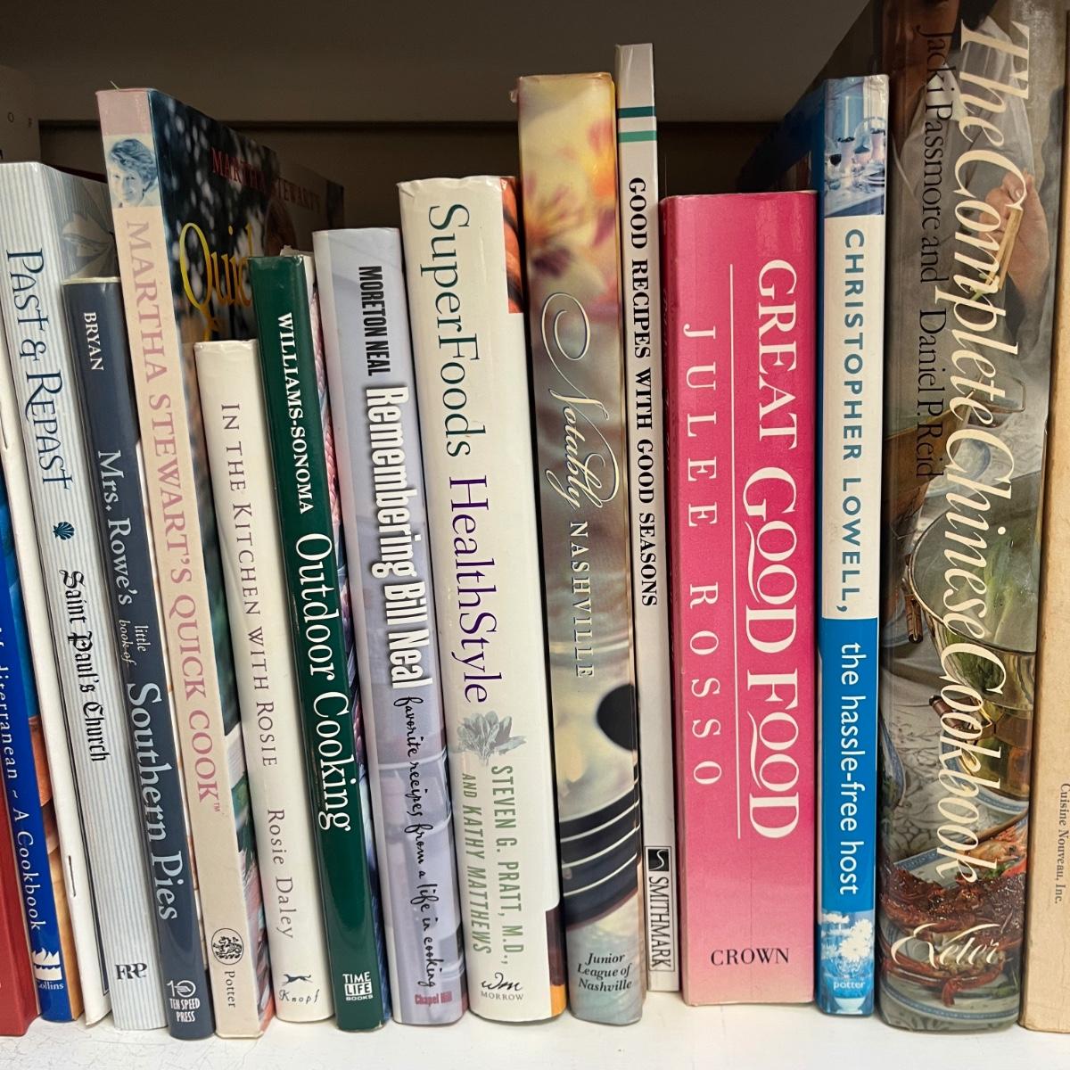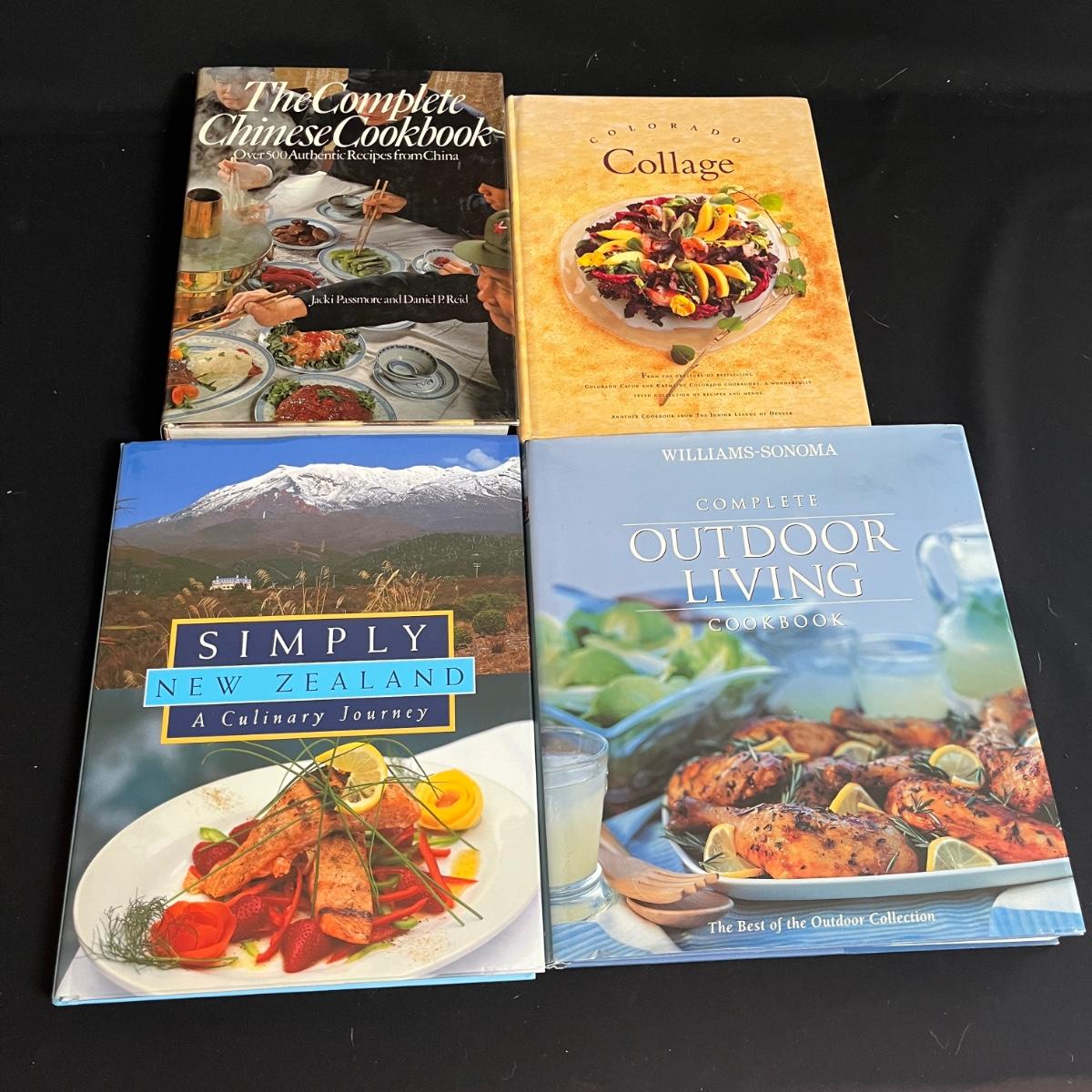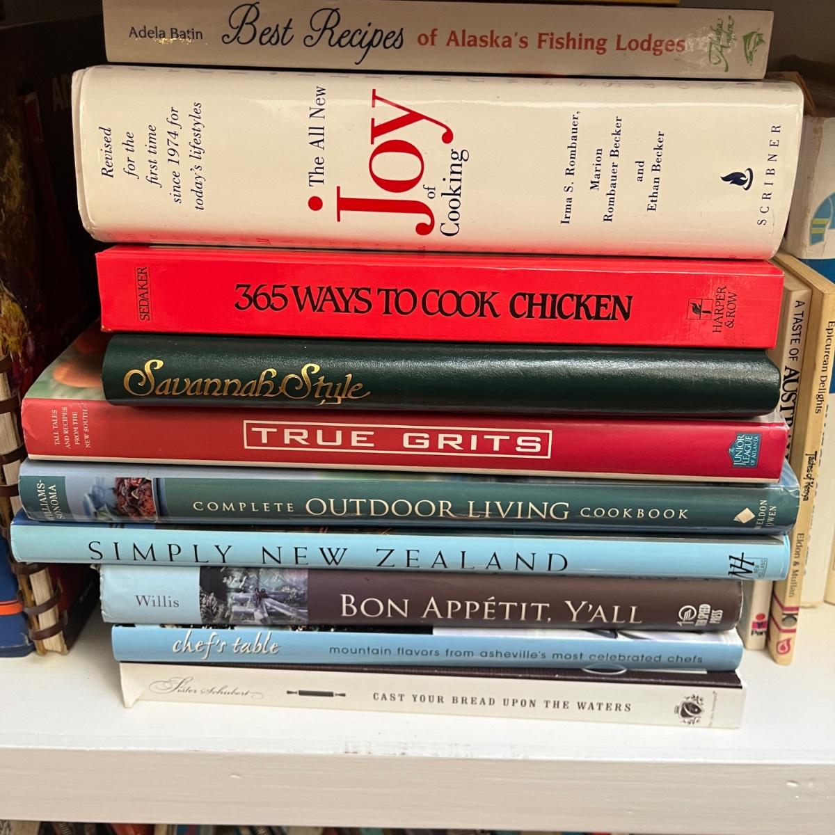 Lot contains over fifty cookbooks including The Joy of Cooking, The Complete Chinese Cookbook, Colorado's Collage, Complete Outdoor Living Cookbook, Pies & Tarts and more. Many have southern influences.