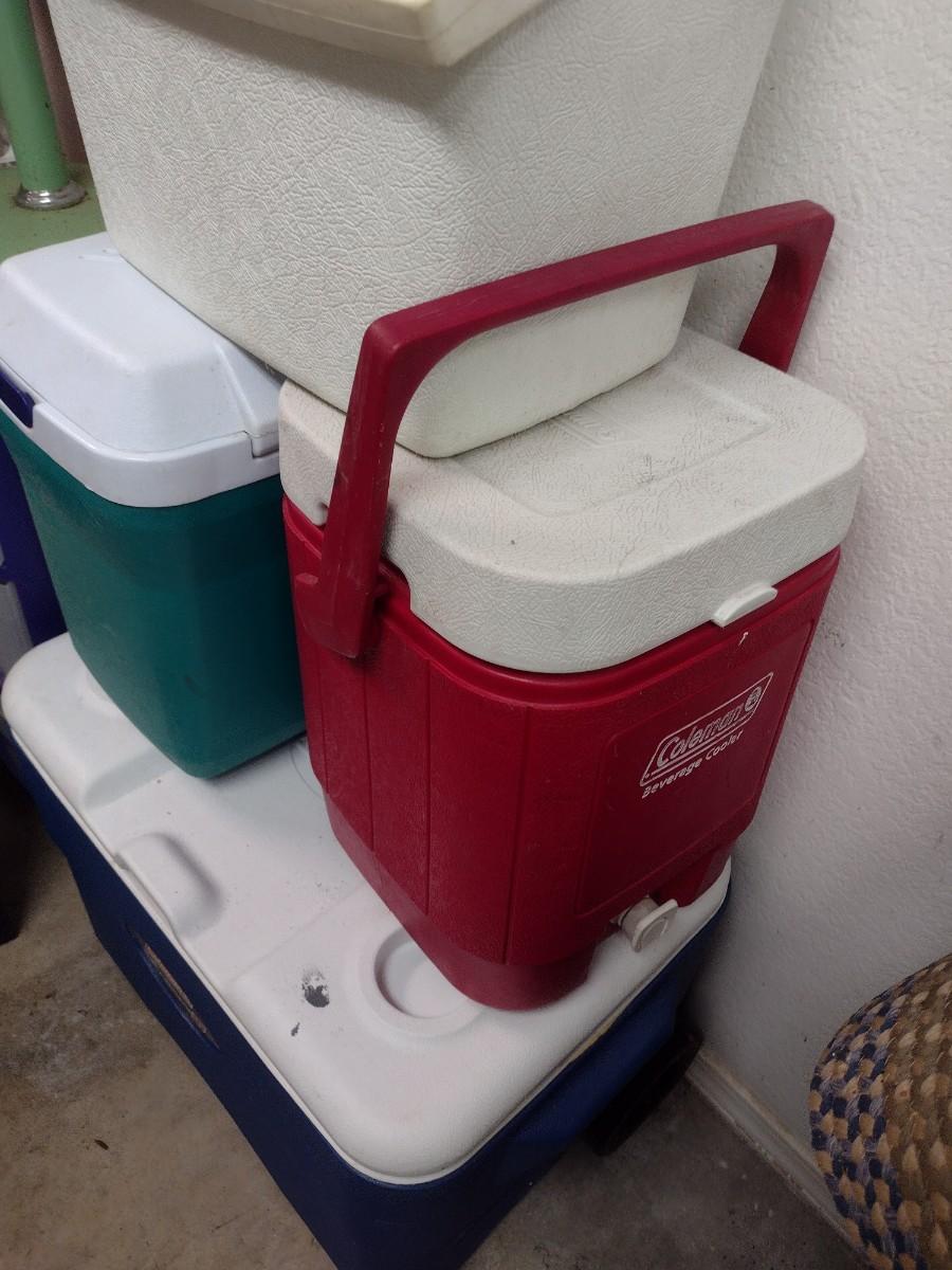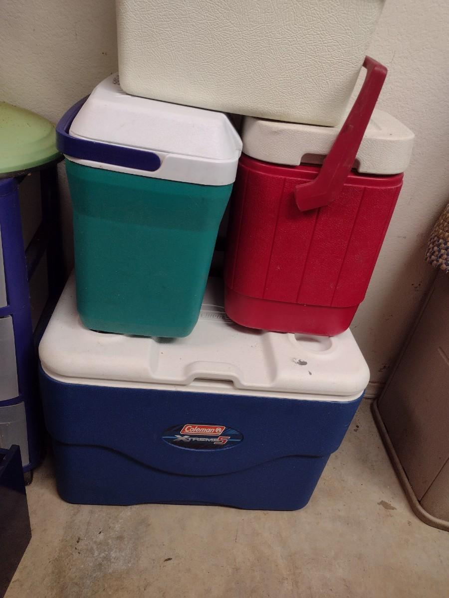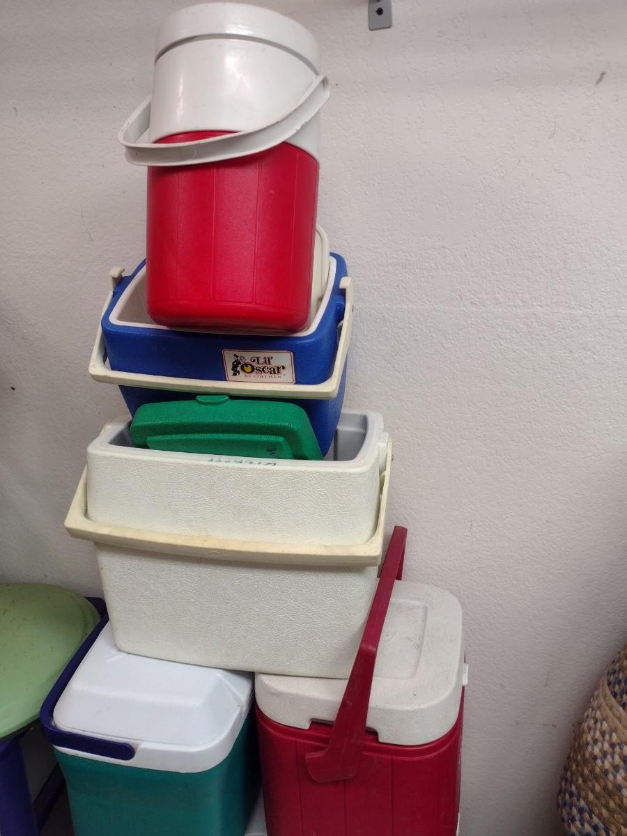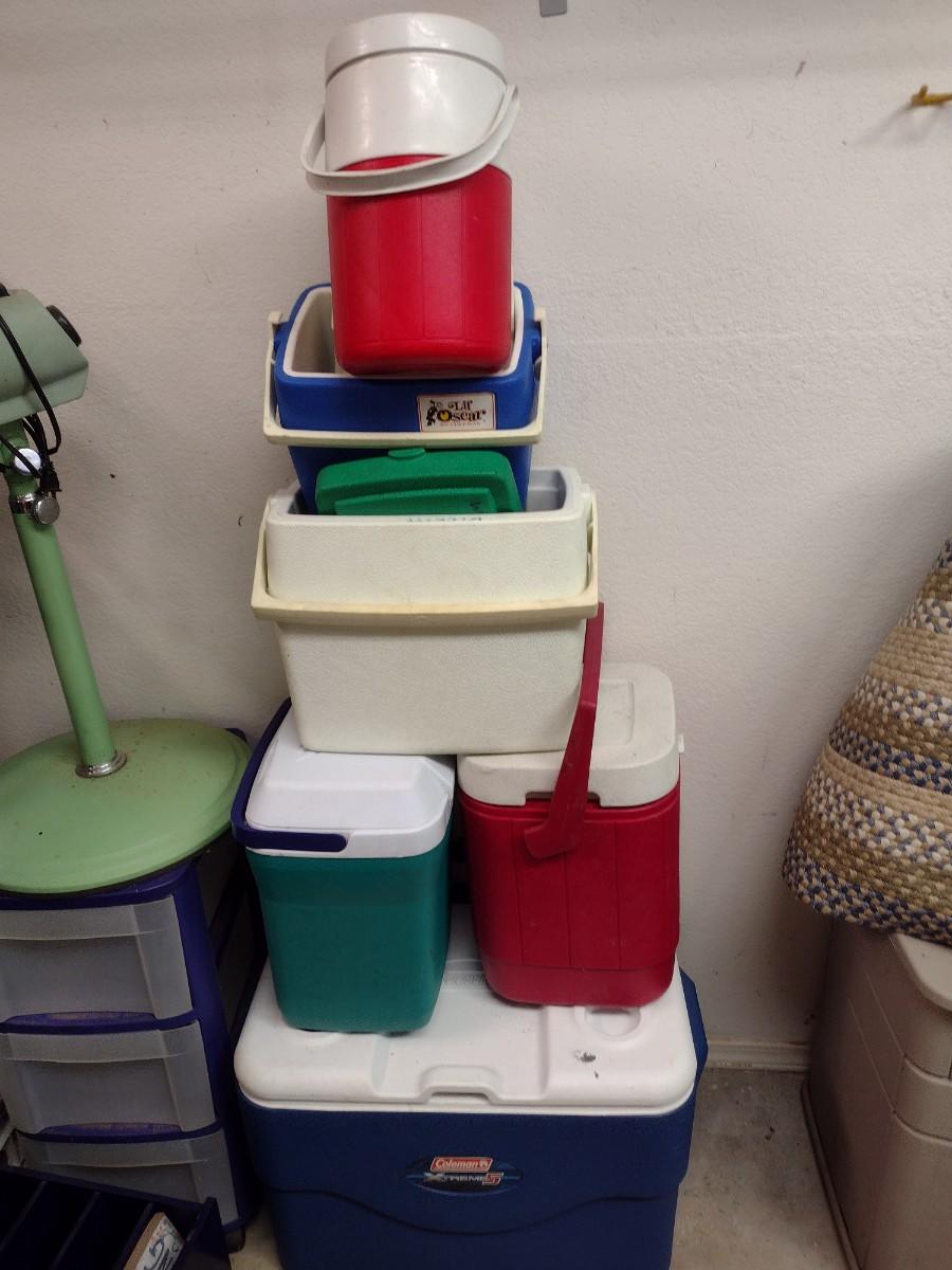 Collection of Coolers Various Sizes Mostly Coleman Brand