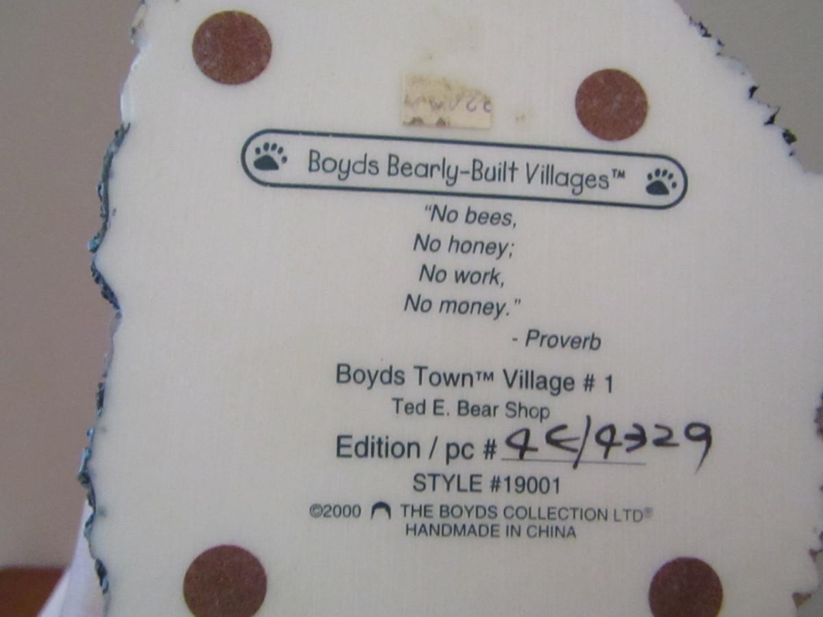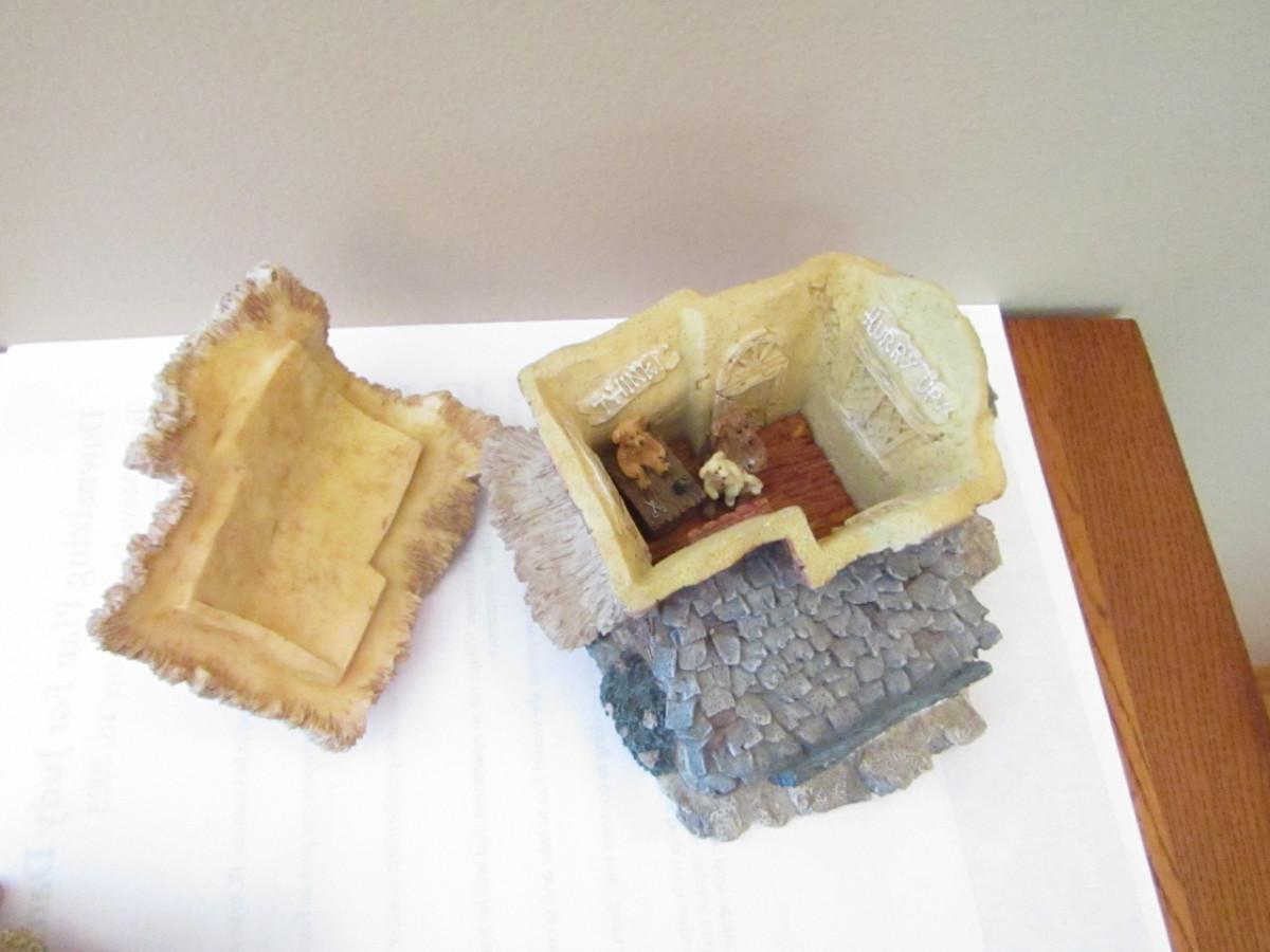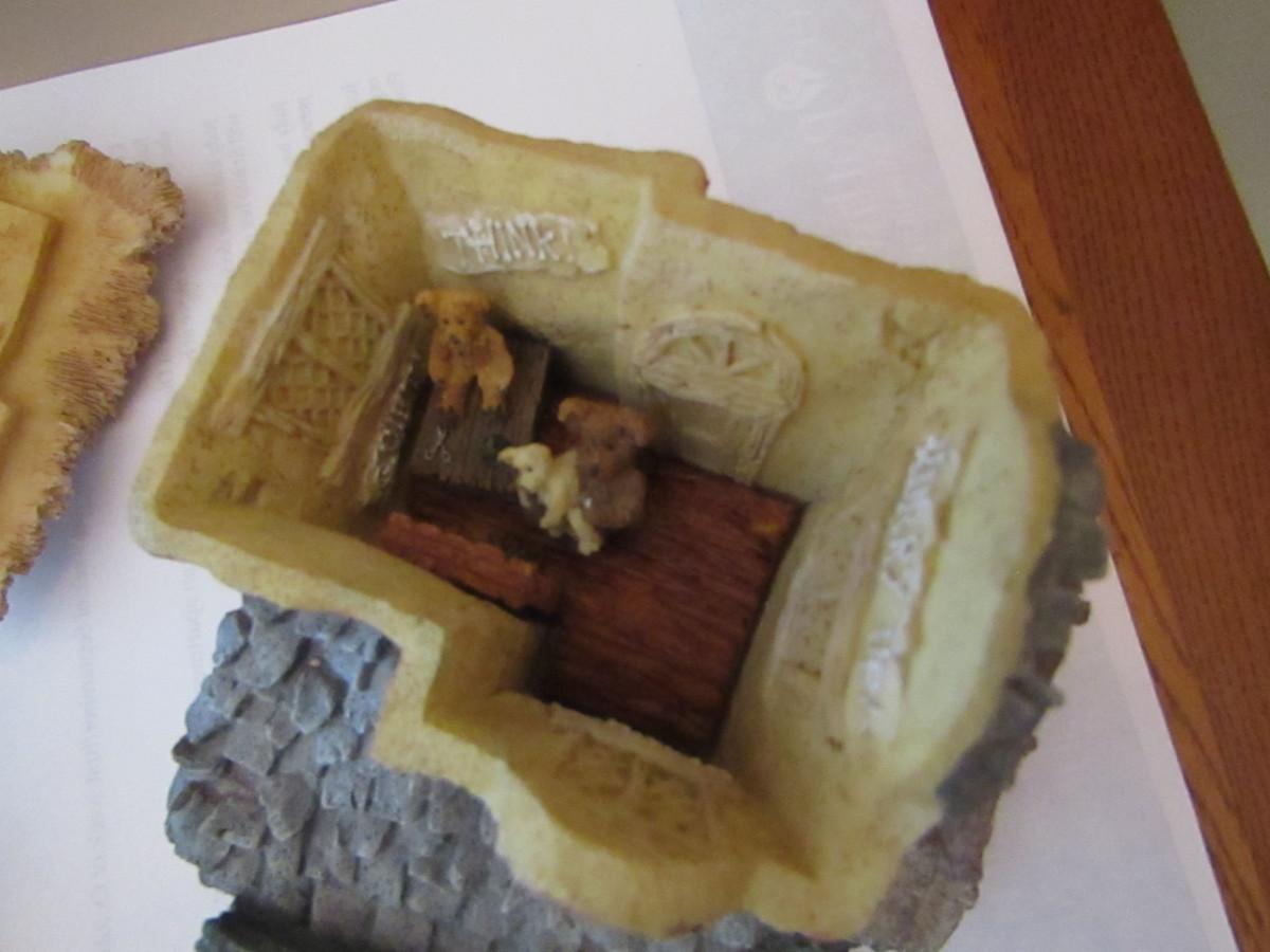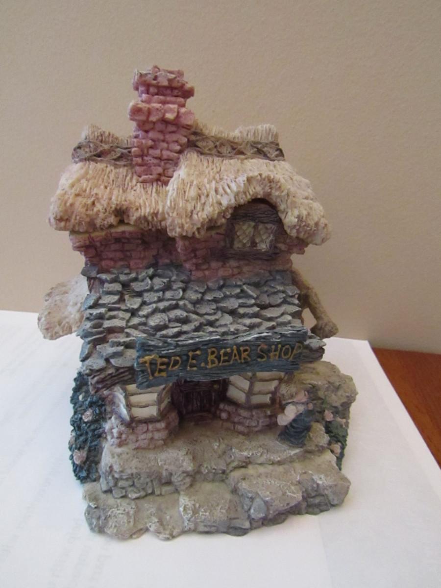 Set of Three Cottage Style Collectible Figurines. Makers include Lilliput Lane and Boyds Bearly Built Villages.