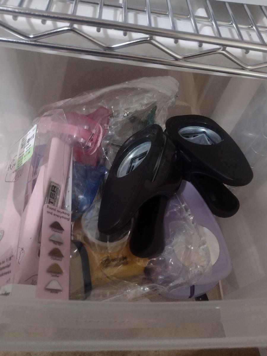 Collection of Craft Accessories, Punches, Tools Etc. Includes Storage Containers (#11)