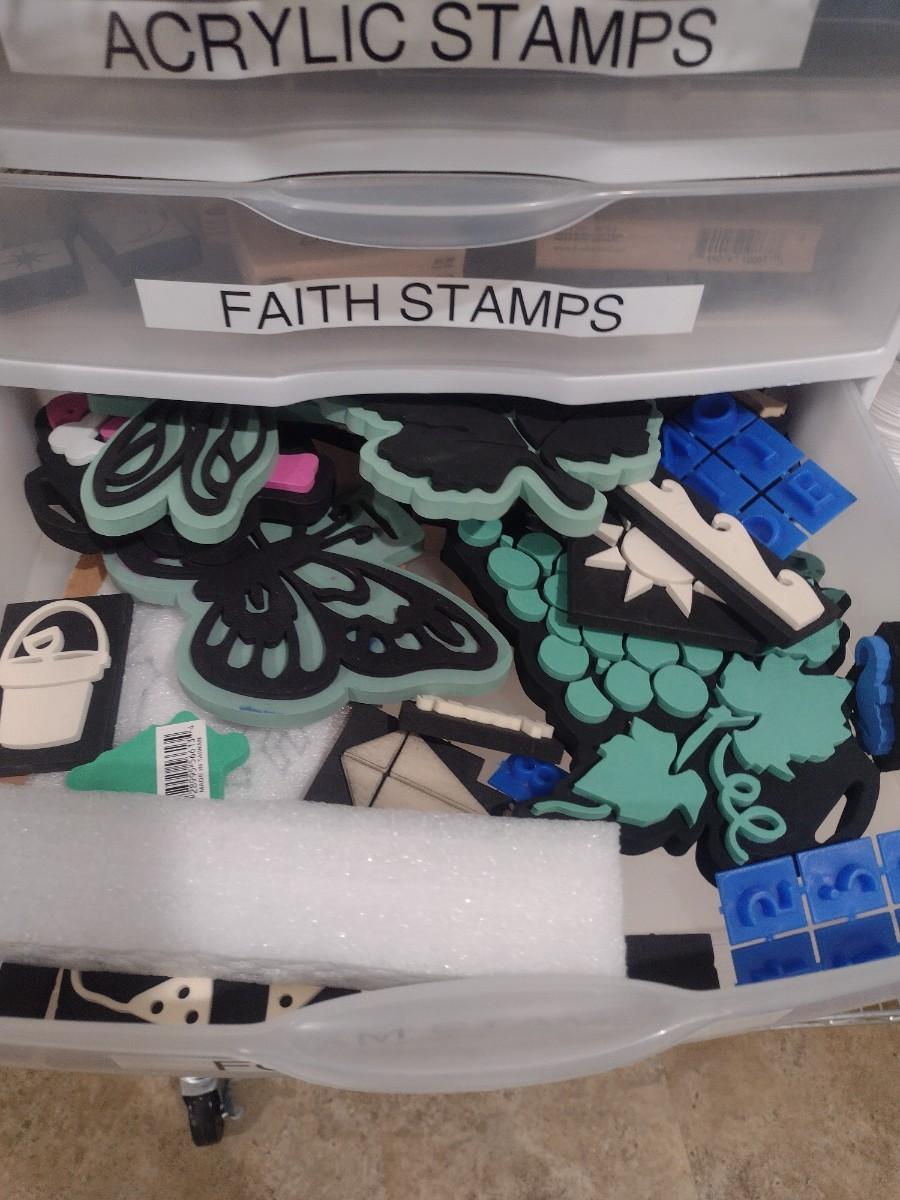 Collection of Craft Accessories, Rubber Stamps, Etc. Includes Storage Containers (#4)
