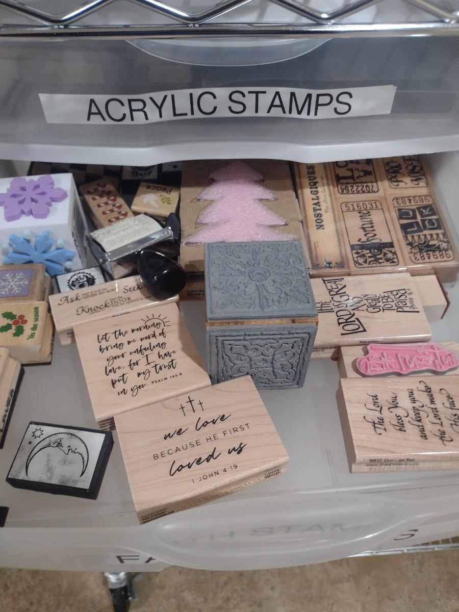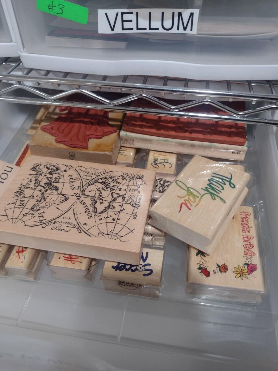 Collection of Craft Accessories, Rubber and Wood Stamps, Etc. Includes Storage Containers (#4)