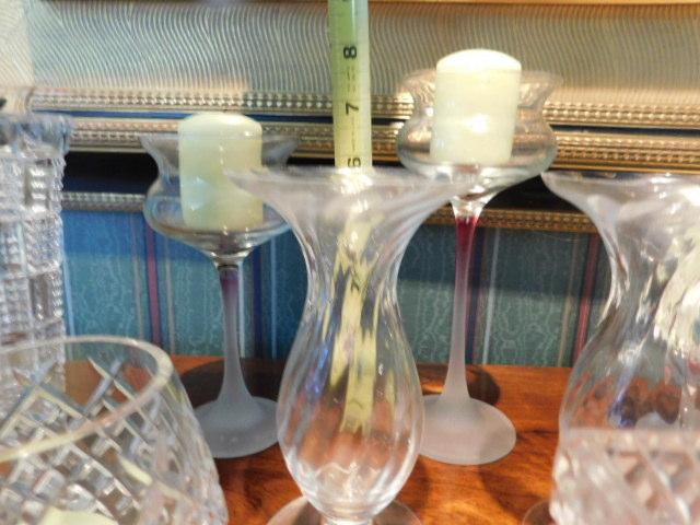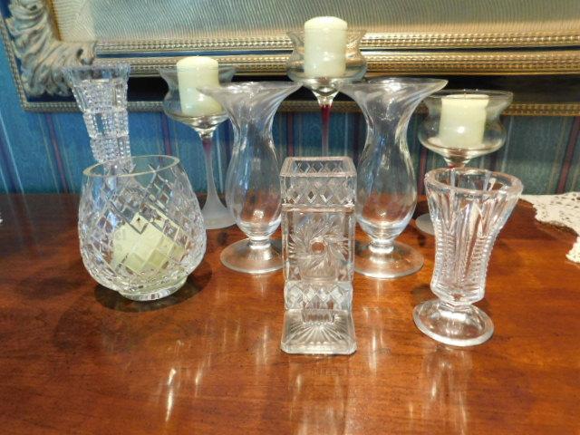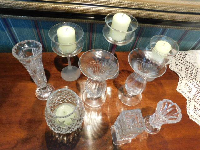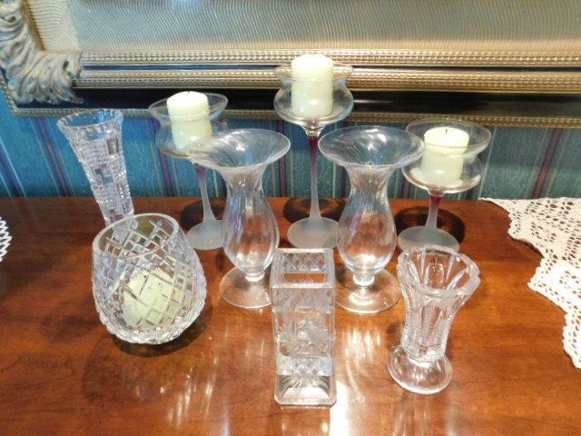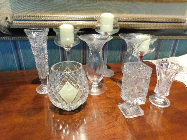 Collection of Crystal and Cut Glass Candle Holders and Bud Vases