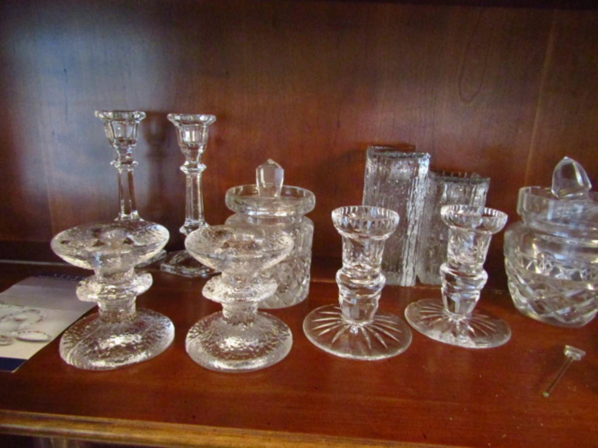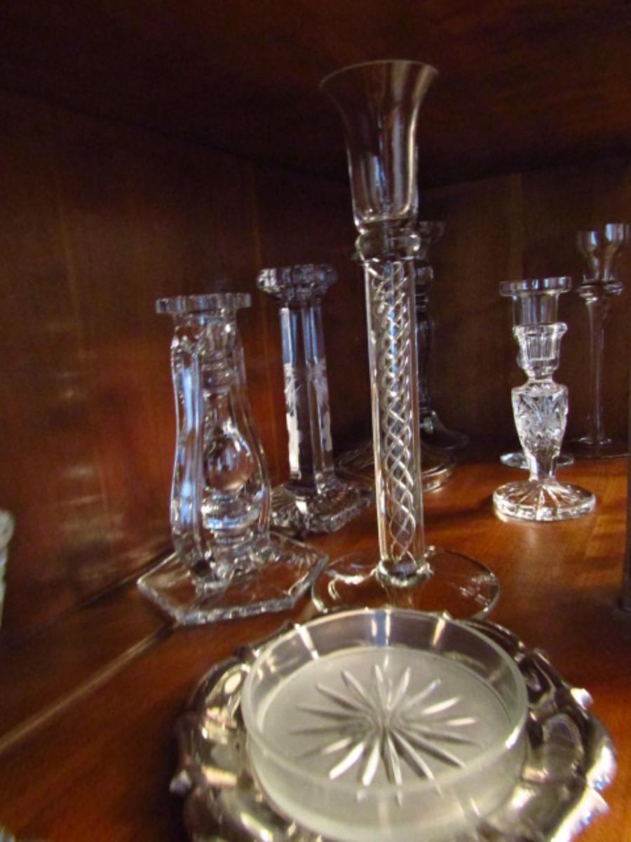 Collection of Crystal and Glass. Drinkware, candlesticks, serving pieces, etc.