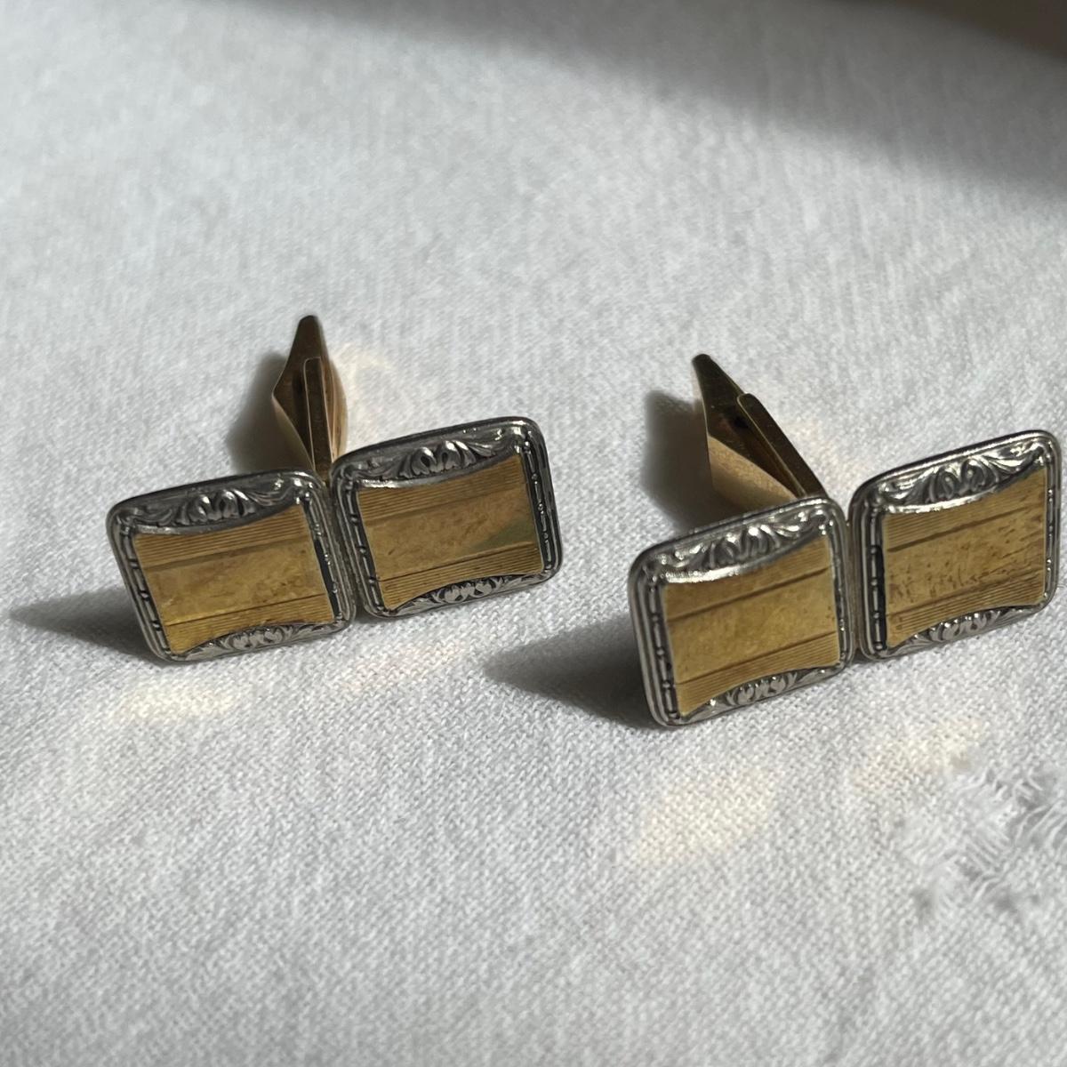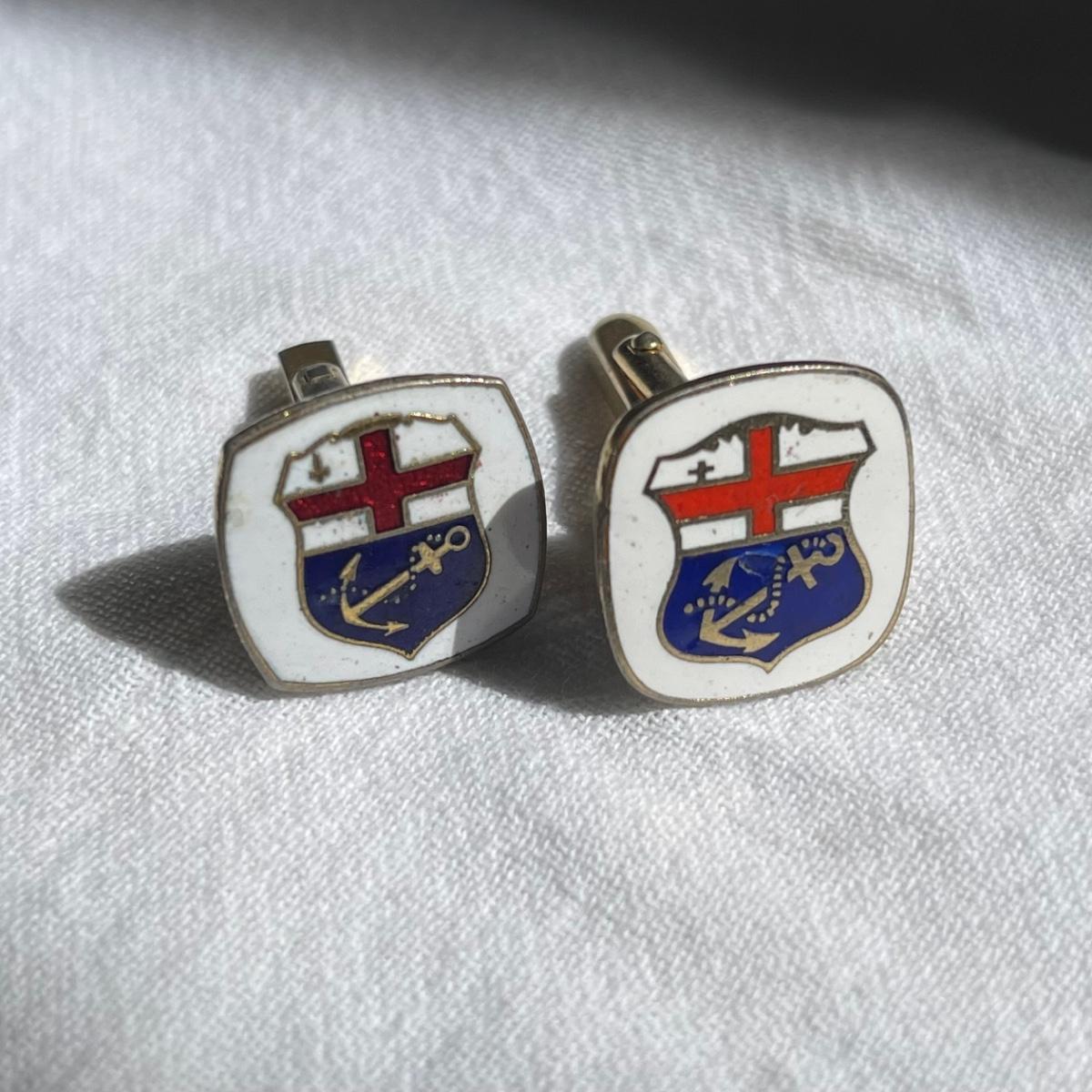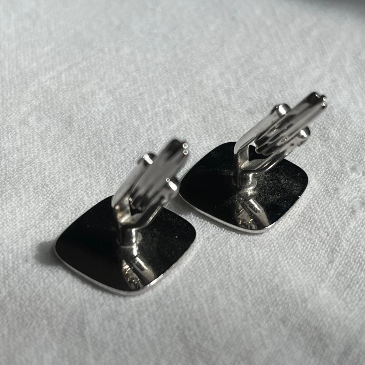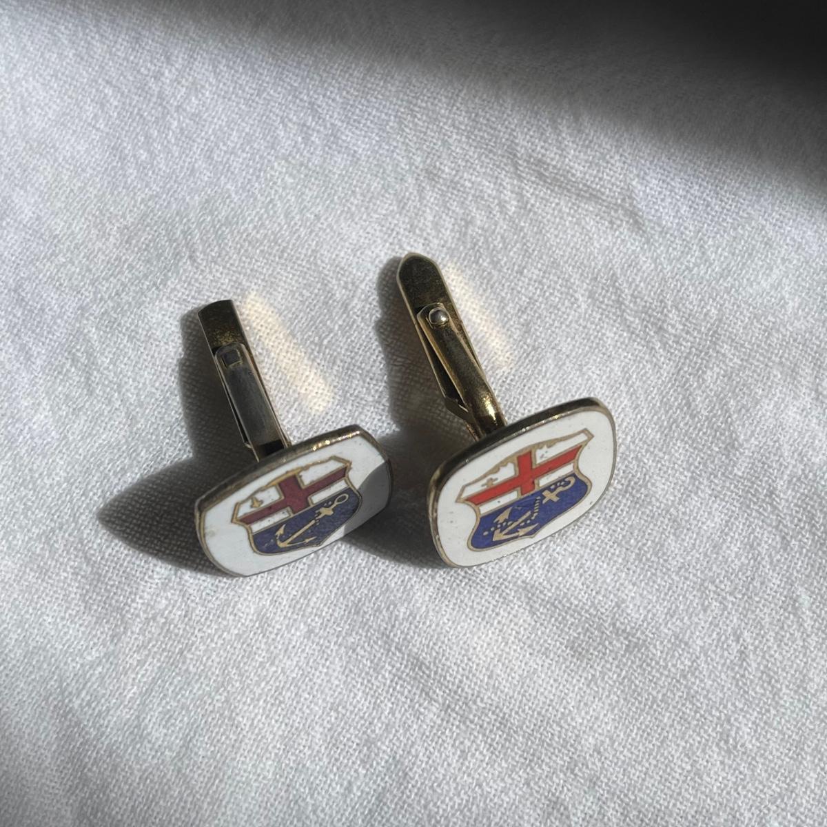 Seven pairs of cufflinks. Two of the cufflinks have the same image on them but different styles of of clips. Some of them had marks although they are difficult to read if they do.