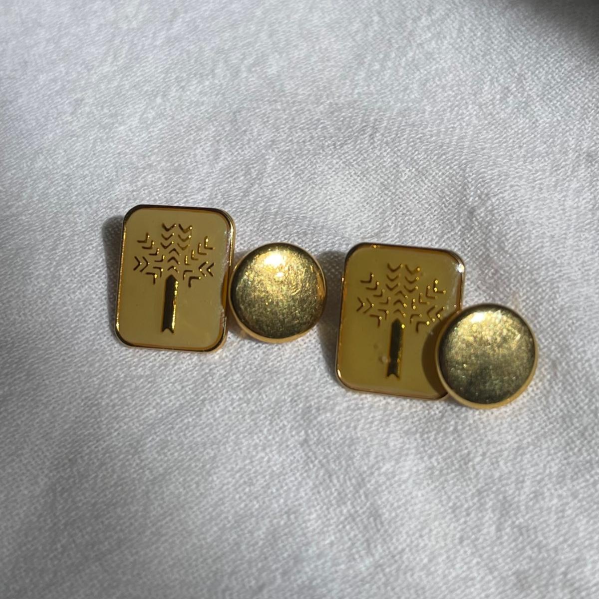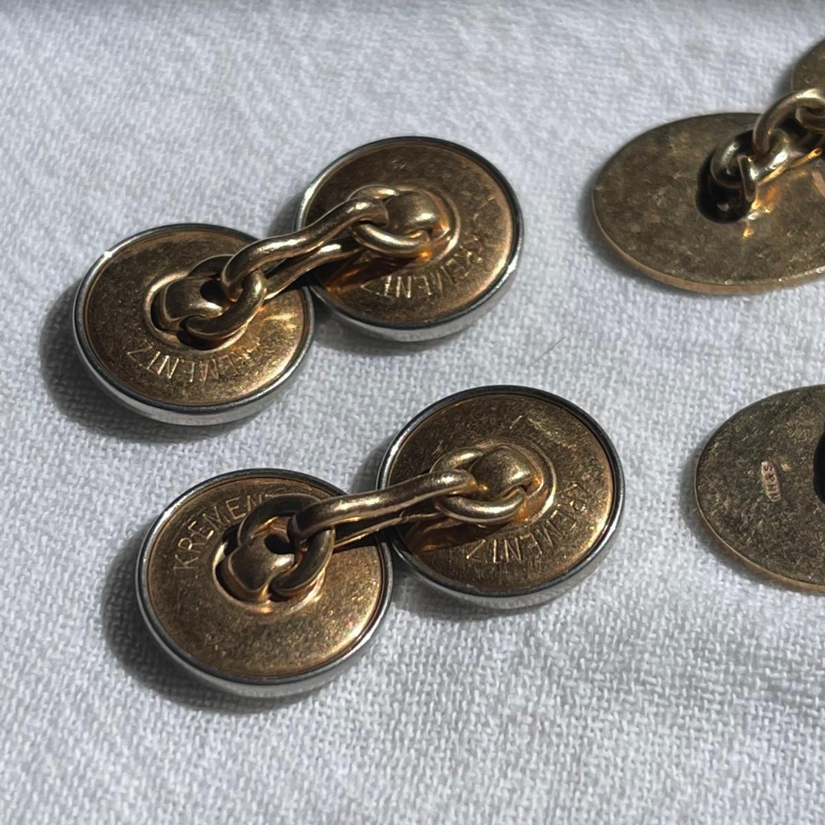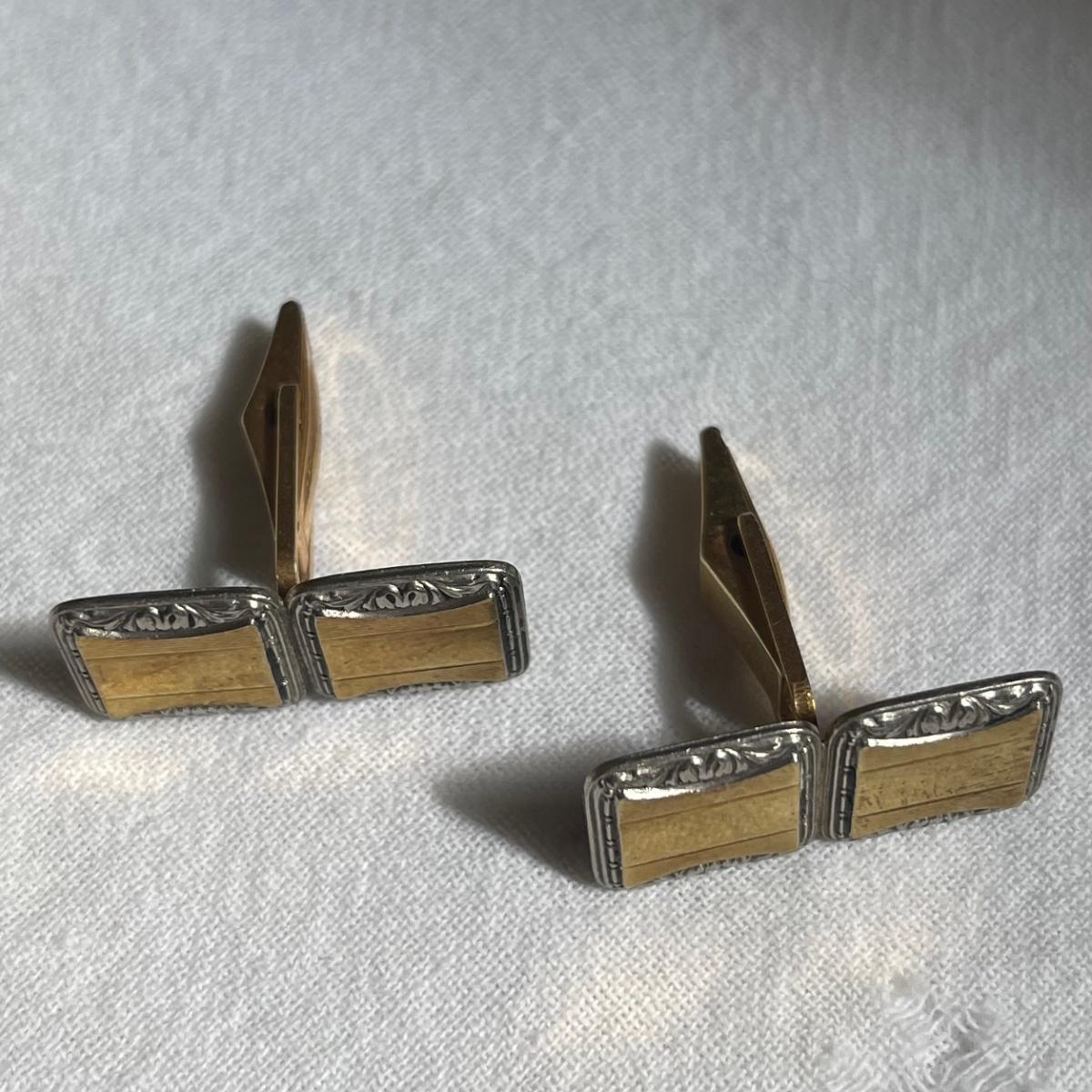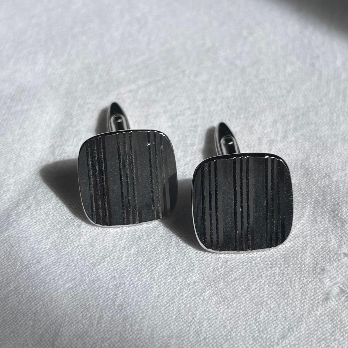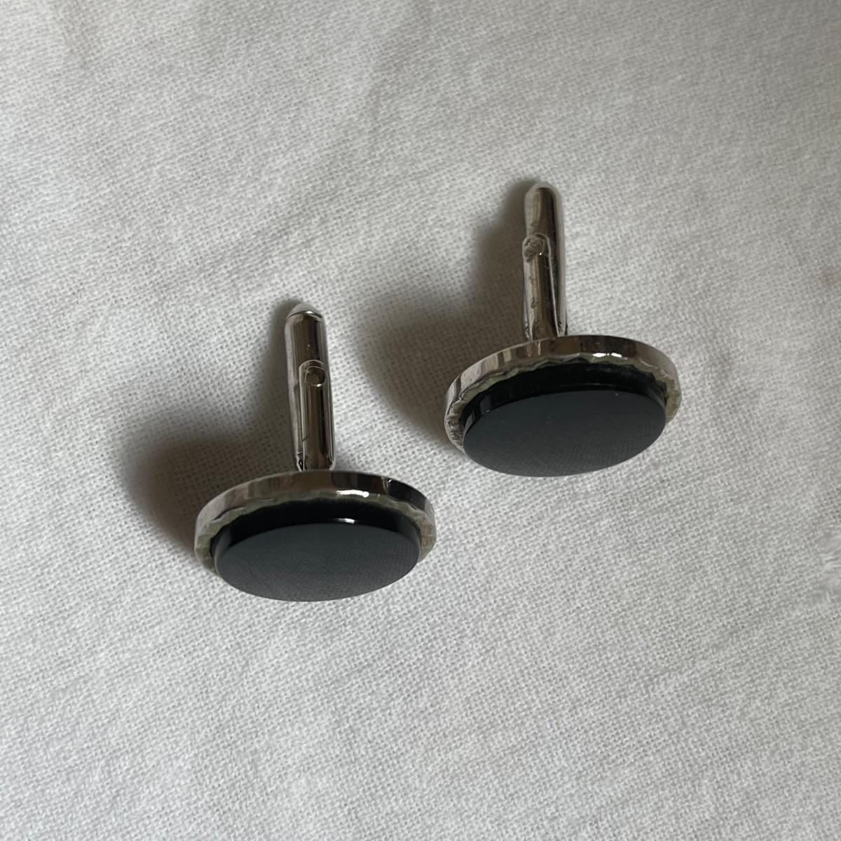 Seven pairs of cufflinks. Two of the cufflinks have the same image on them but different styles of of clips. Some of them had marks although they are difficult to read if they do.