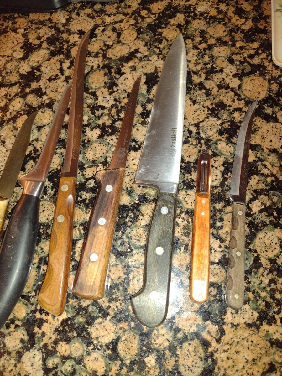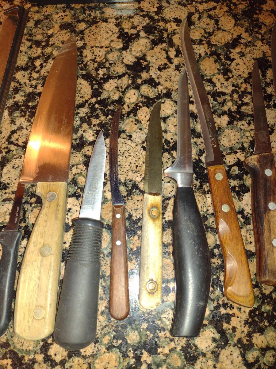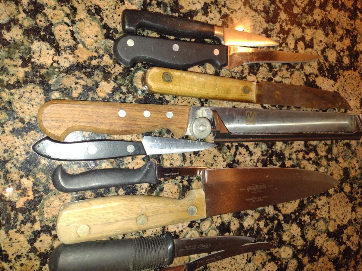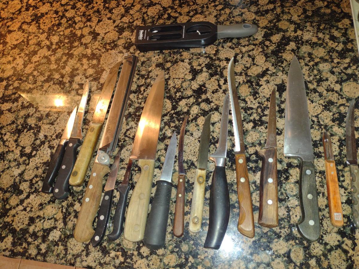 Collection of Cutlery- Assorted Makers. Includes Montana, Henckels, OXO, Hoffritz, Smith's knife sharpener.
