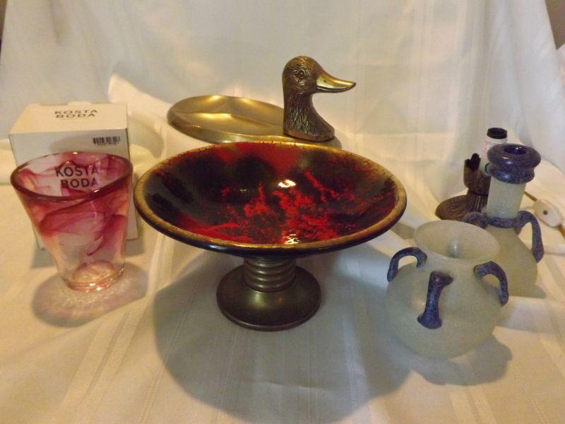 Nice collection decor items including a brass duck, brass candlestick and enameled brass bowl. Also a small Kosta Boda cup. **Please read Terms and Conditions before placing a bid. Pick up is Sunday, September 15, 2019 from 11am to 4pm and Tuesday, September 17 from 4pm-7pm in Sicklerville. All sales are final. All sales are as is, where is. Please review all photos. Any props included in photos are not included in listing. All measurements are approximate.