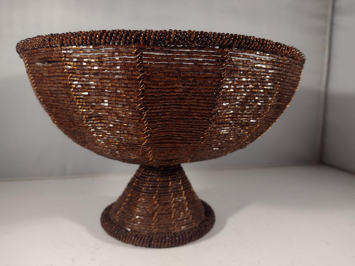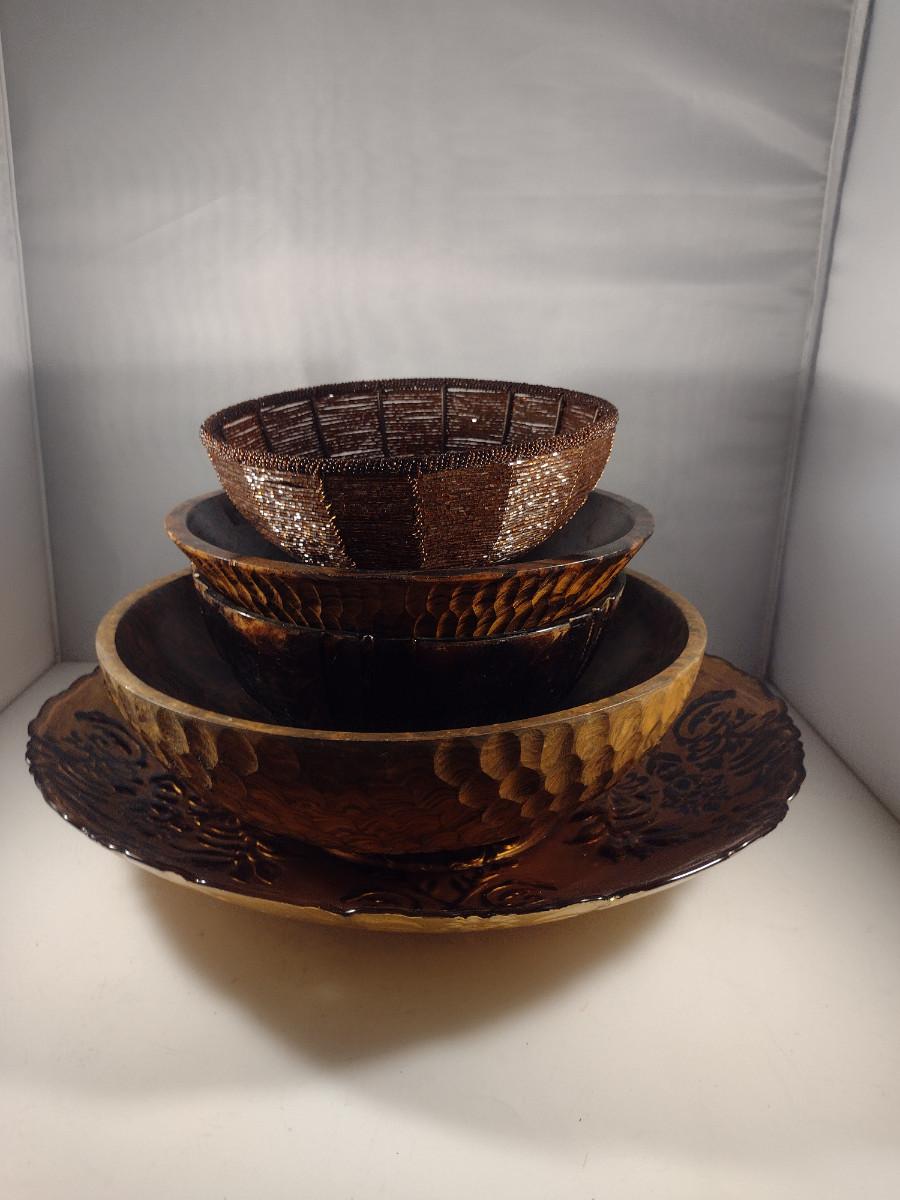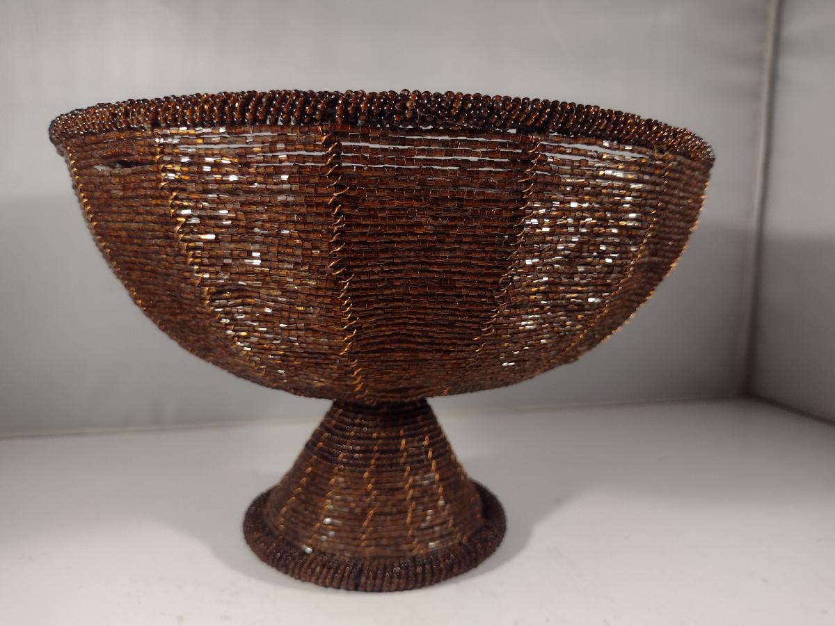 Collection of Decorative Bowls- Glass, Wooden, and Beaded on Metal Frame
