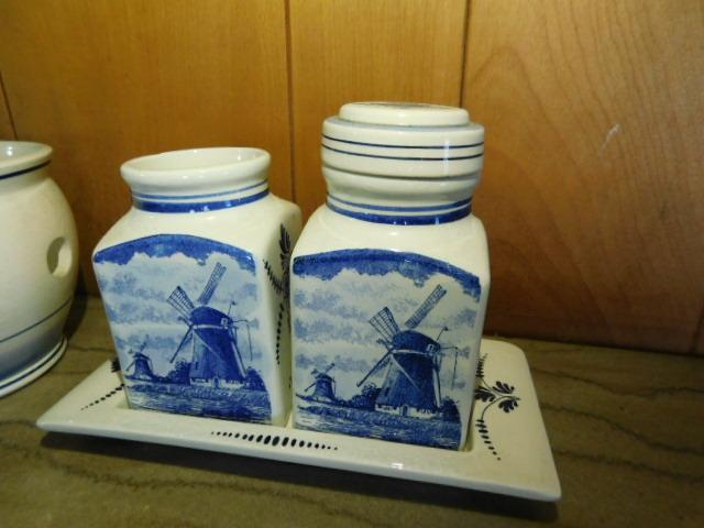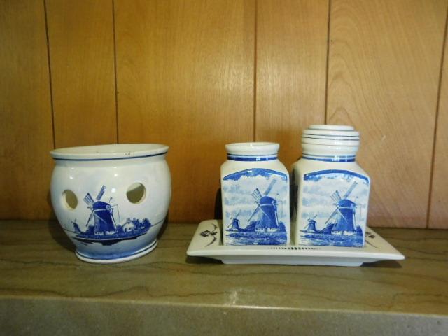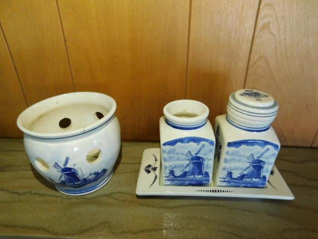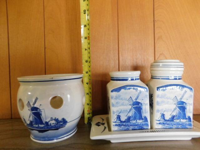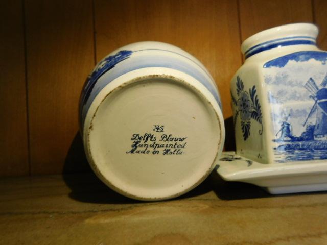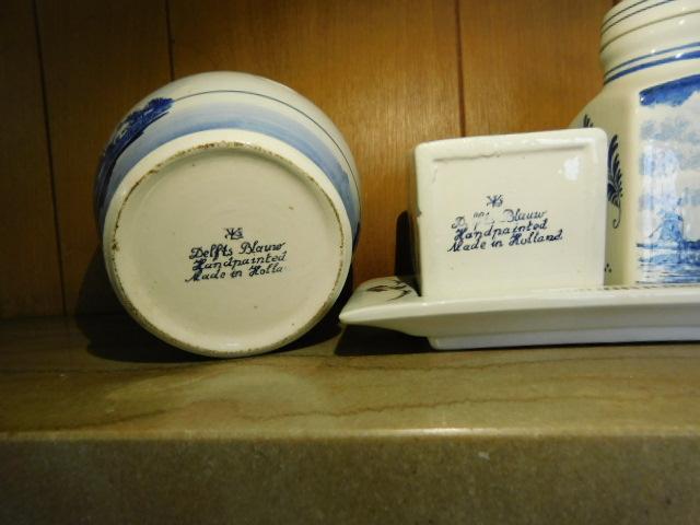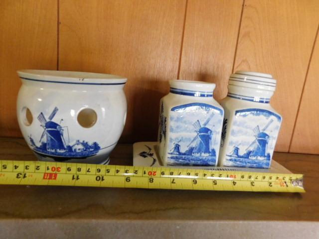 Collection of Delft Blauw Ceramic Items may have some wear or crazing. One lid is missing from jar.