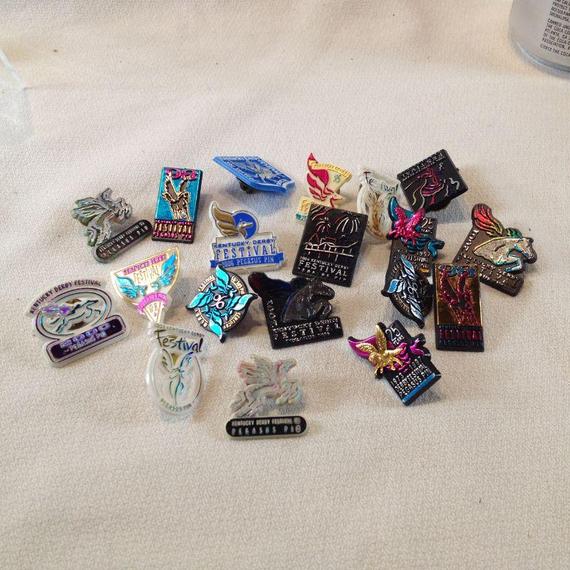 This lot is for a little starter set of Derby Festival Pins. We found these scattered about the drawers and containers of our last estate sale, we collected them in a bag and here they are ready for you.