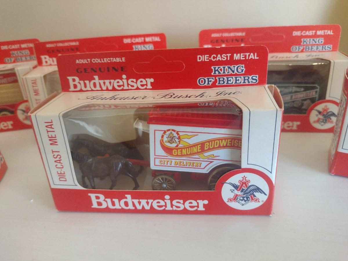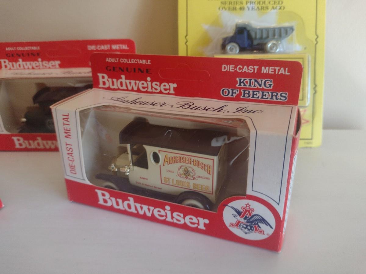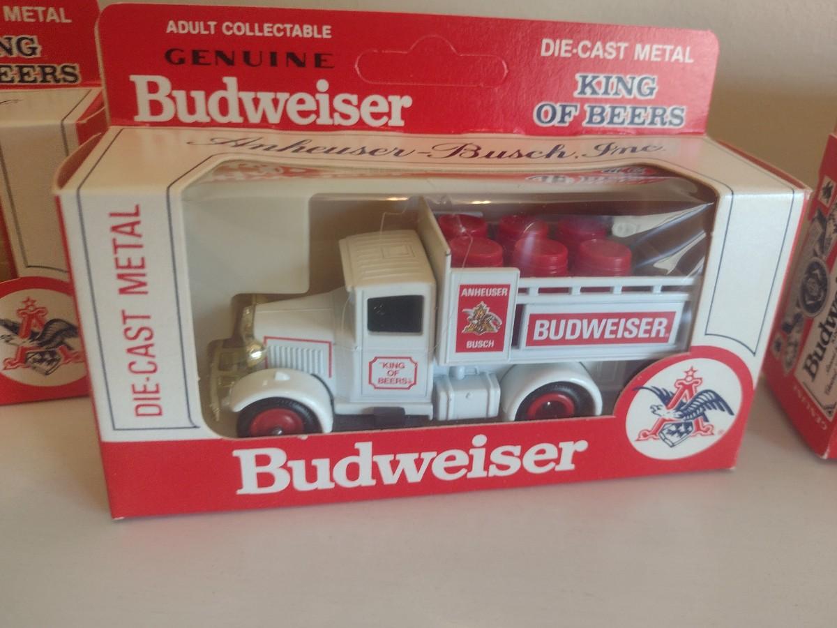 Collection of Die Cast King of Beers Budweiser Trucks in Original Packaging