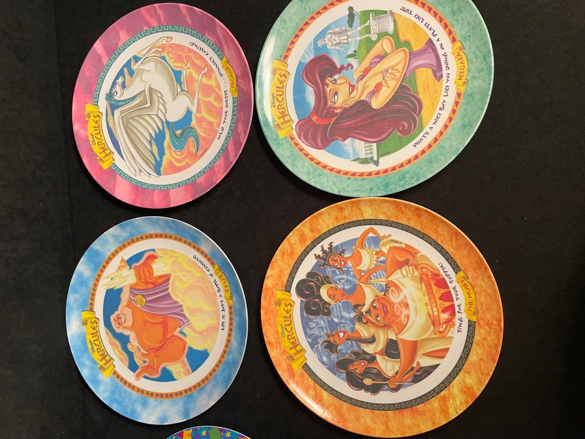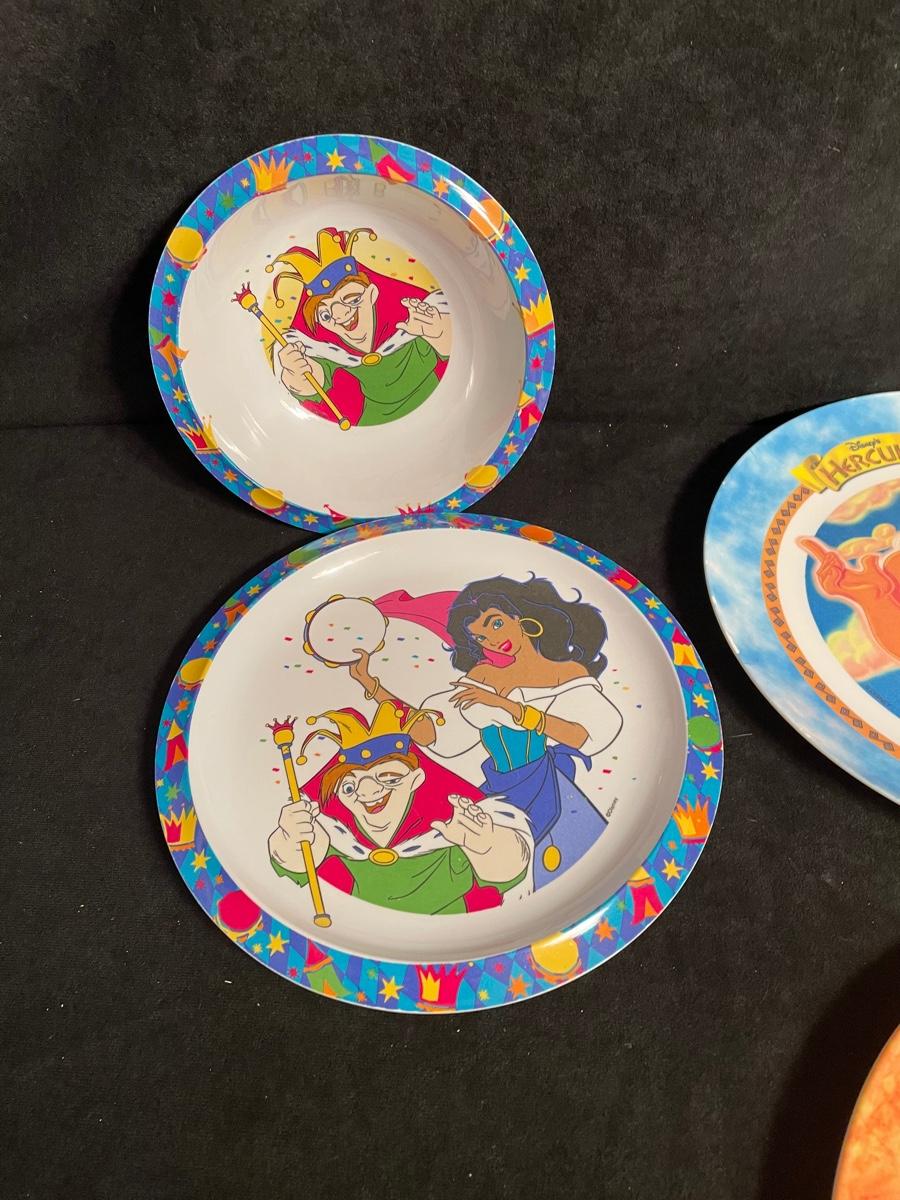 Four Hercules plates and a bowl and plate set from The Hunchback of Notre Dame. Collector's items