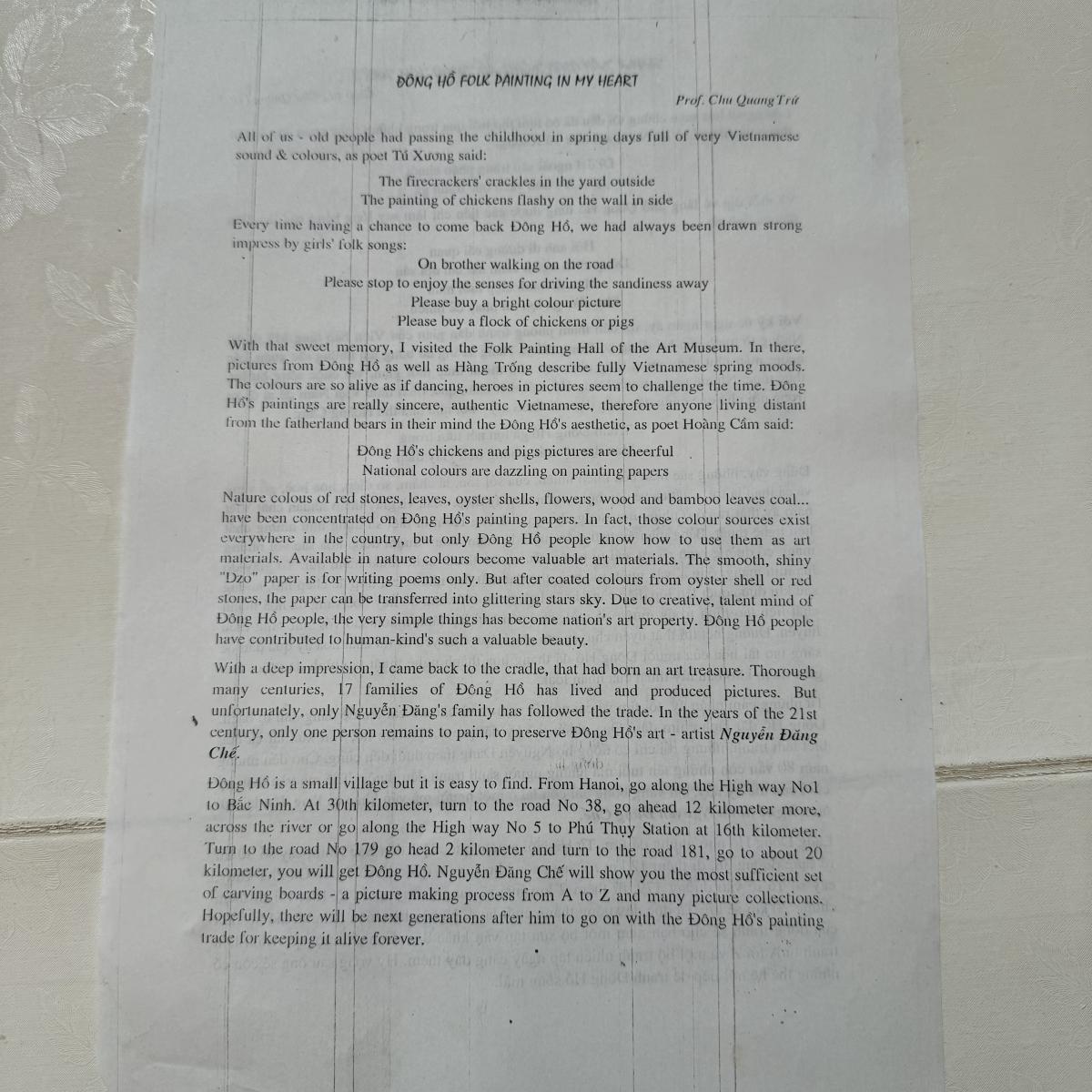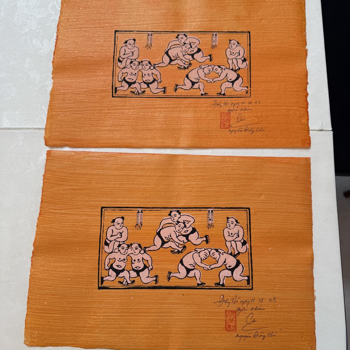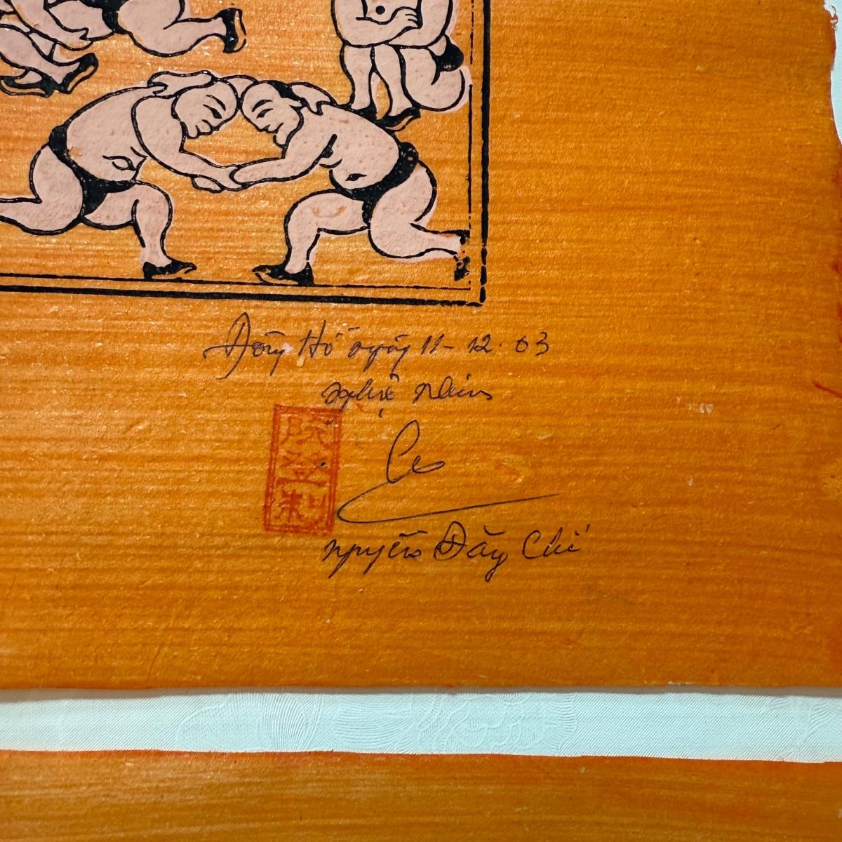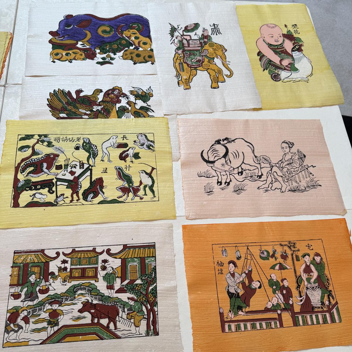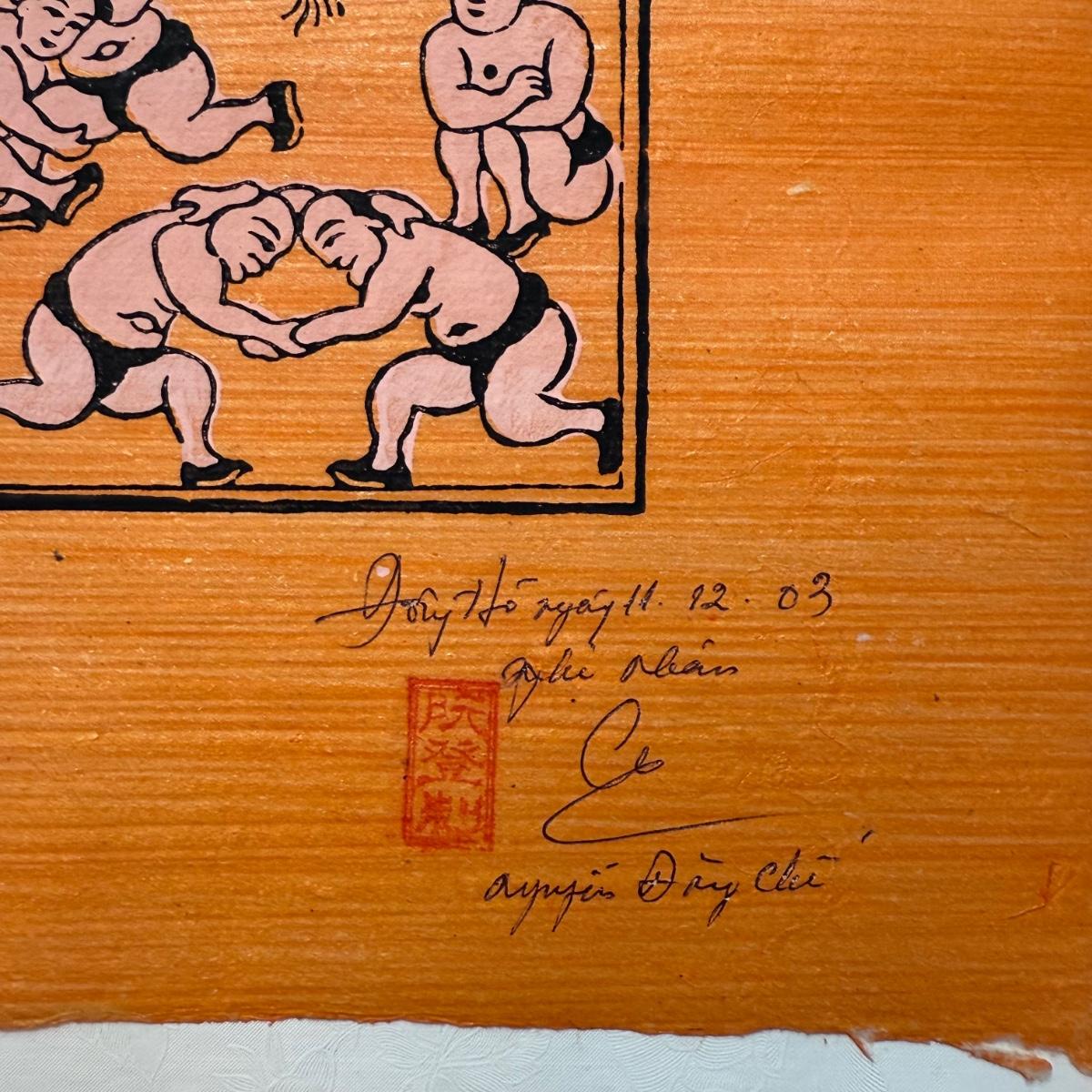 This lot features a fascinating and fairly large collection of Vietnamese artist DongHo’s folk art. Included in this collection are 23 larger prints of depicting various scenes on 10” x 15” what appears to be handmade rice-paper. Of these larger prints three are signed and stamped with a small note. Also included are eight greeting cards featuring mini versions of some of the same scenes. These measure 5” x 7”. See pictures for details. Shipping available.