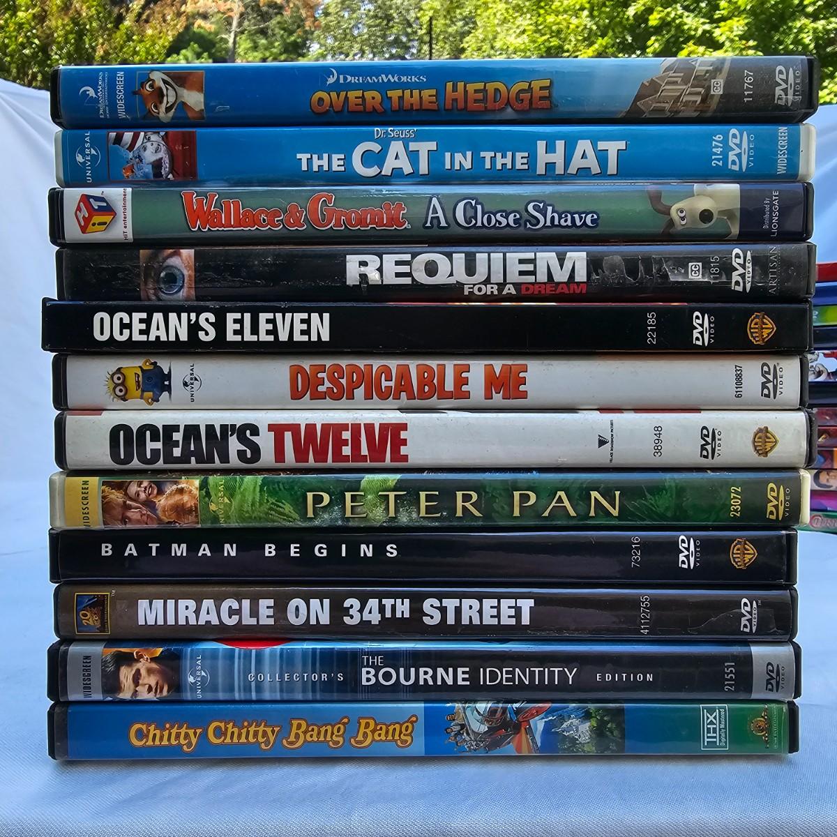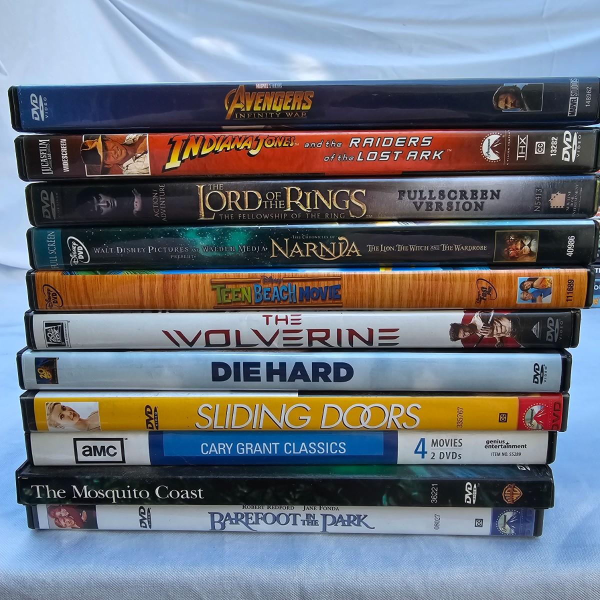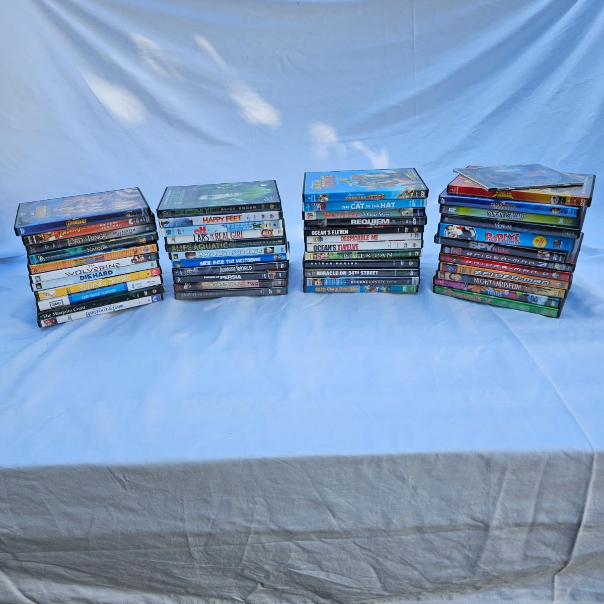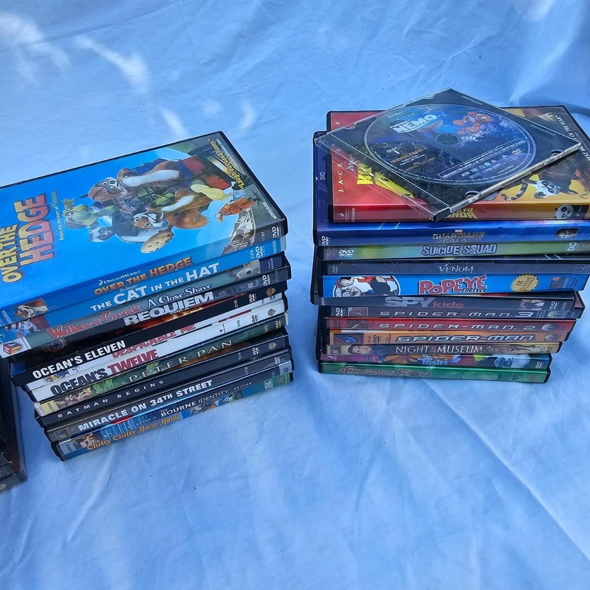 Over 45 DVD movies in cases. Large selection of genres, action, kids, teen and more. See photos for details. Shipping available.