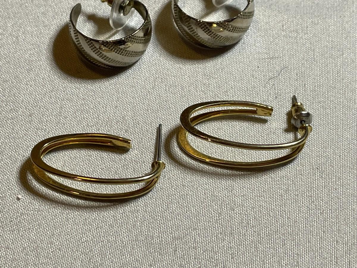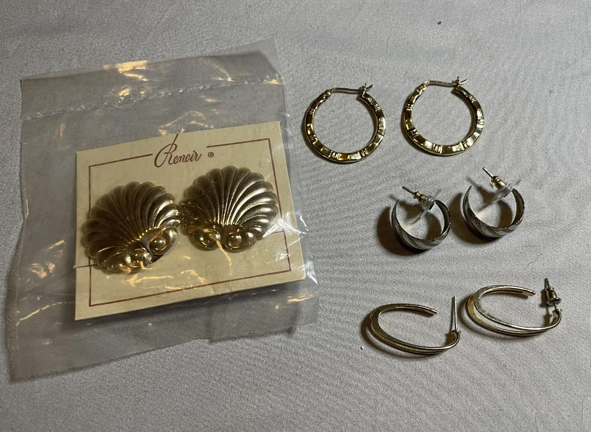 The pair of Renoir earrings are new in the never opened package and are clip ons. The other three pairs are for pierced ears.