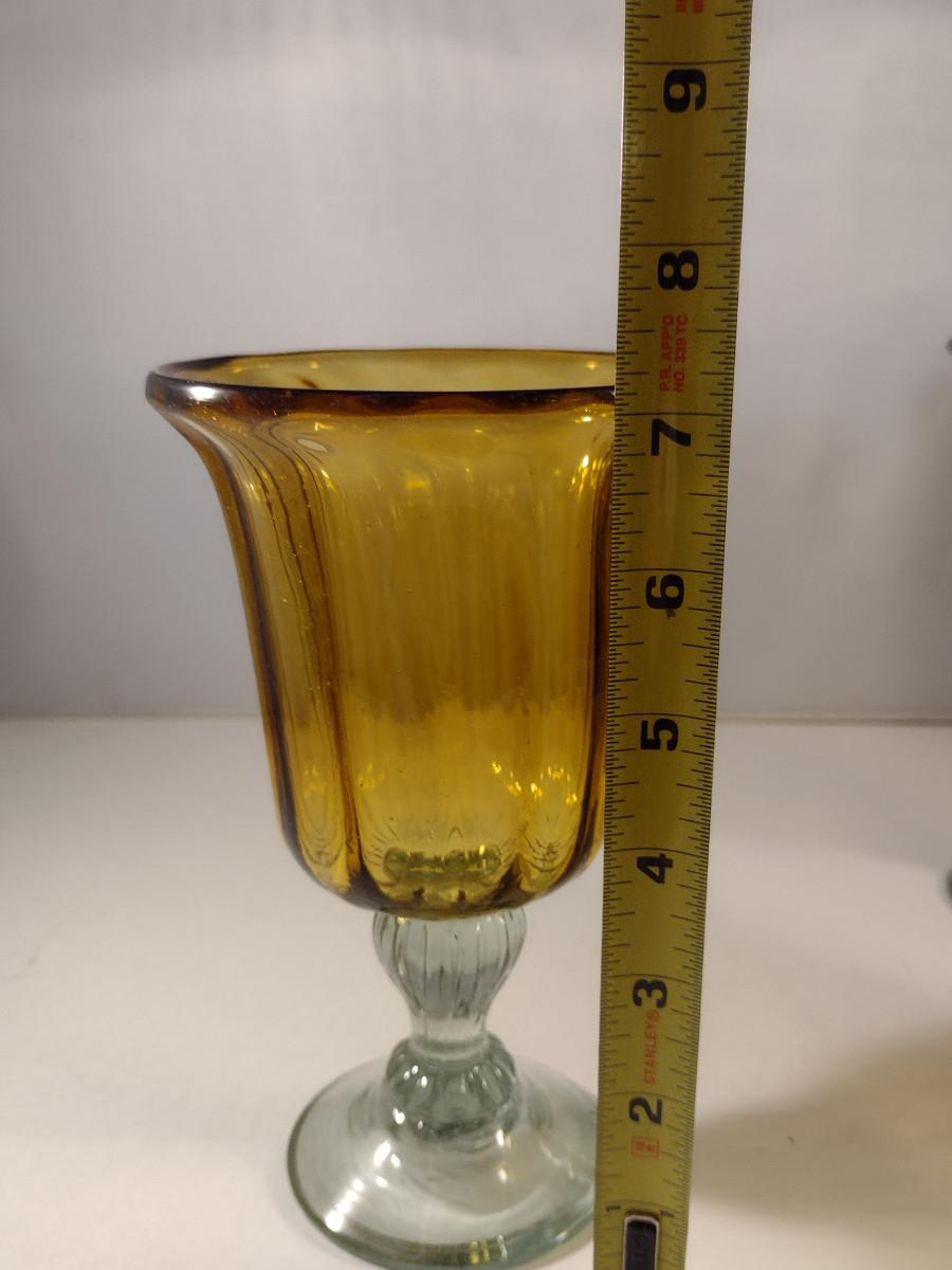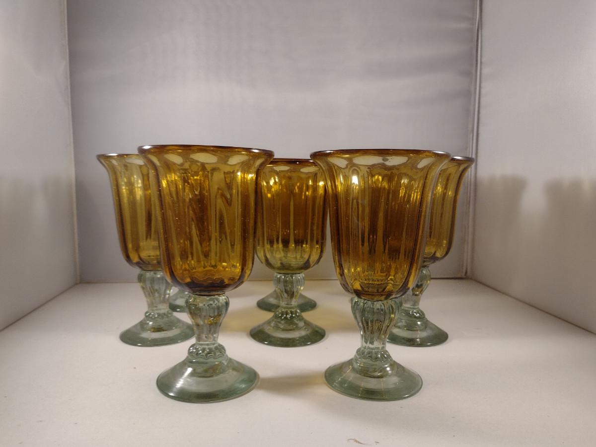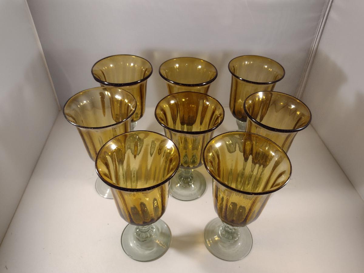 Collection of Eight Amber and Blue Blown Glass Goblets