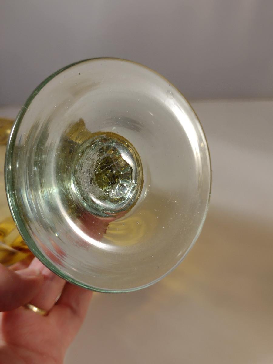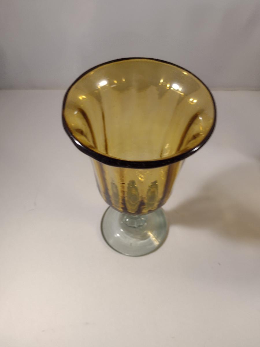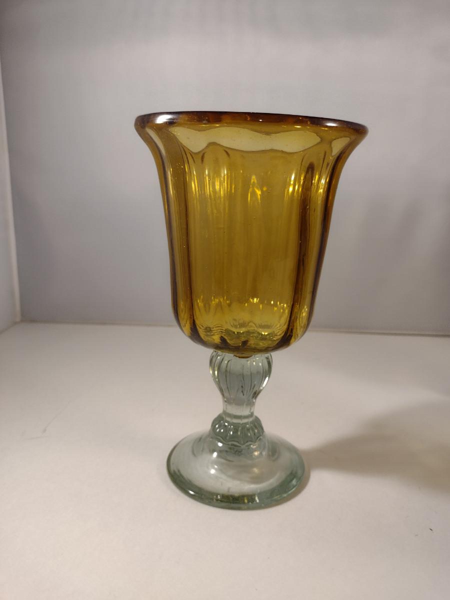 Collection of Eight Amber and Blue Blown Glass Goblets