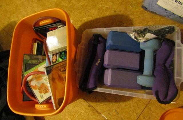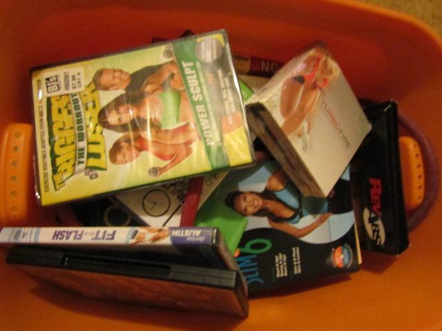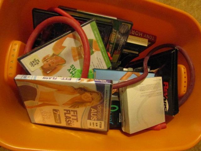 Collection of Exercise Equipment and Instructional DVDs.