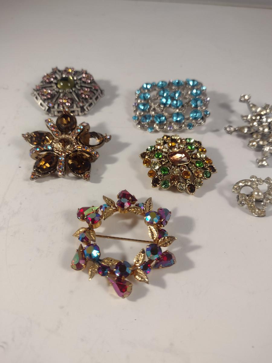 Collection of Fashion Jewelry (#6). Rhinestone brooch assortment.