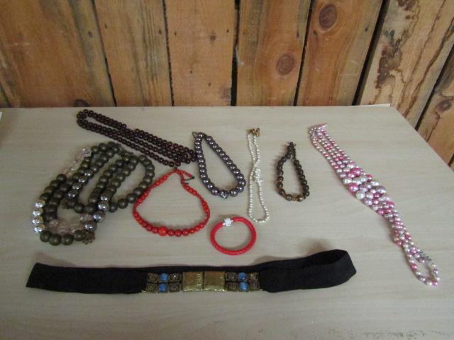 Collection of Fashion Jewelry- Beaded Necklaces, Bracelets, and a Belt
