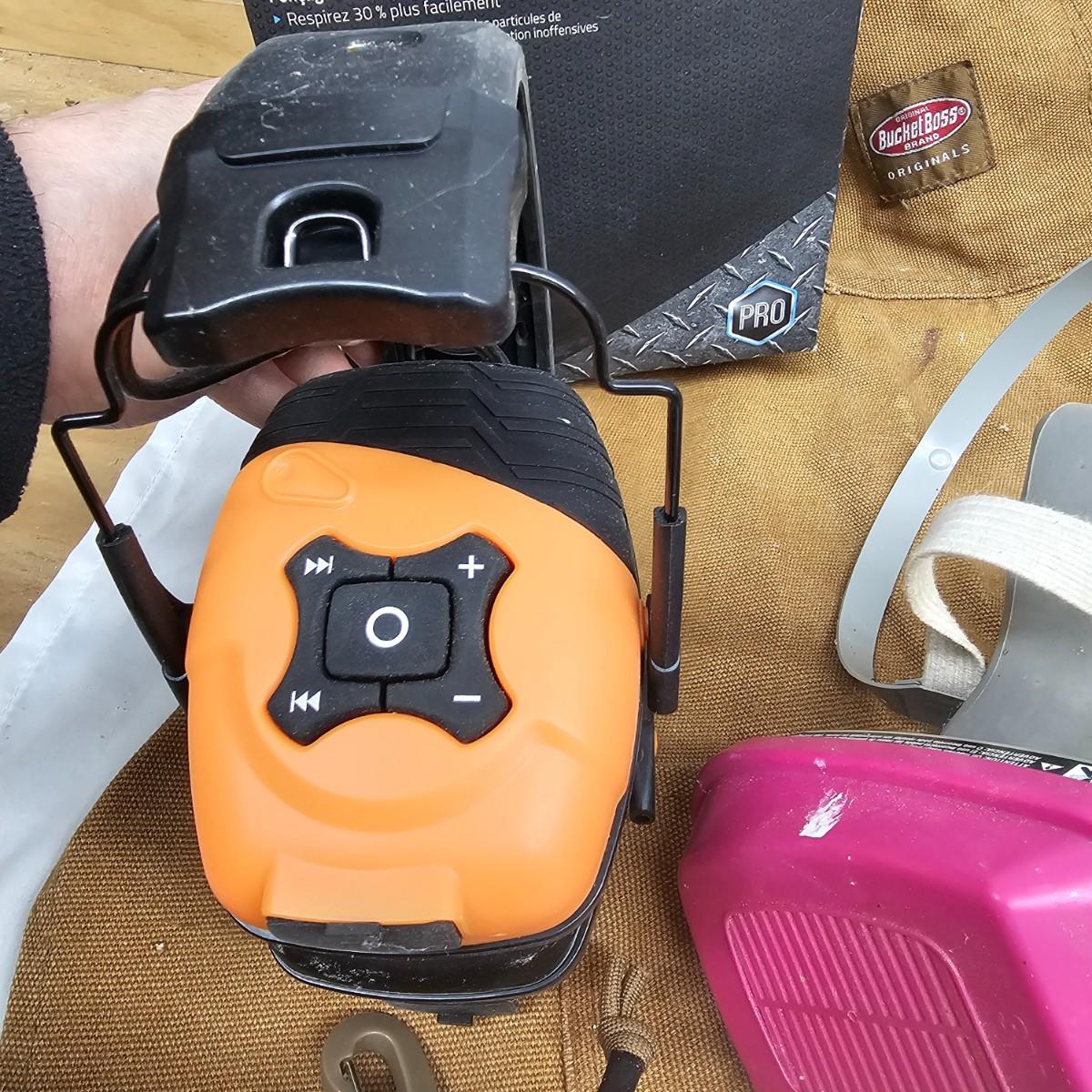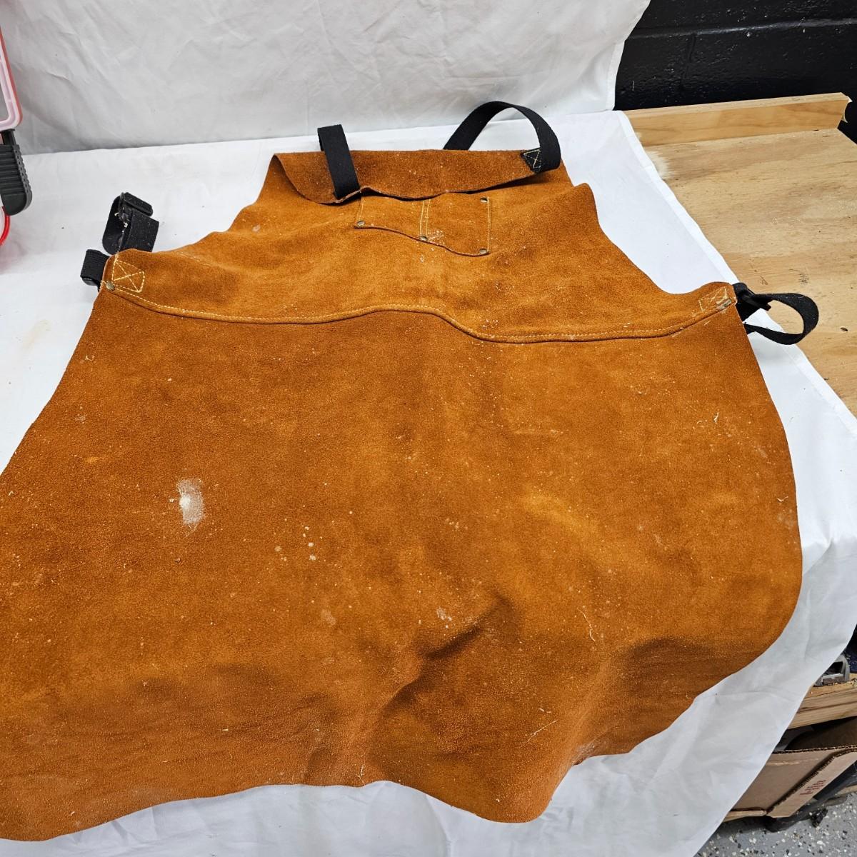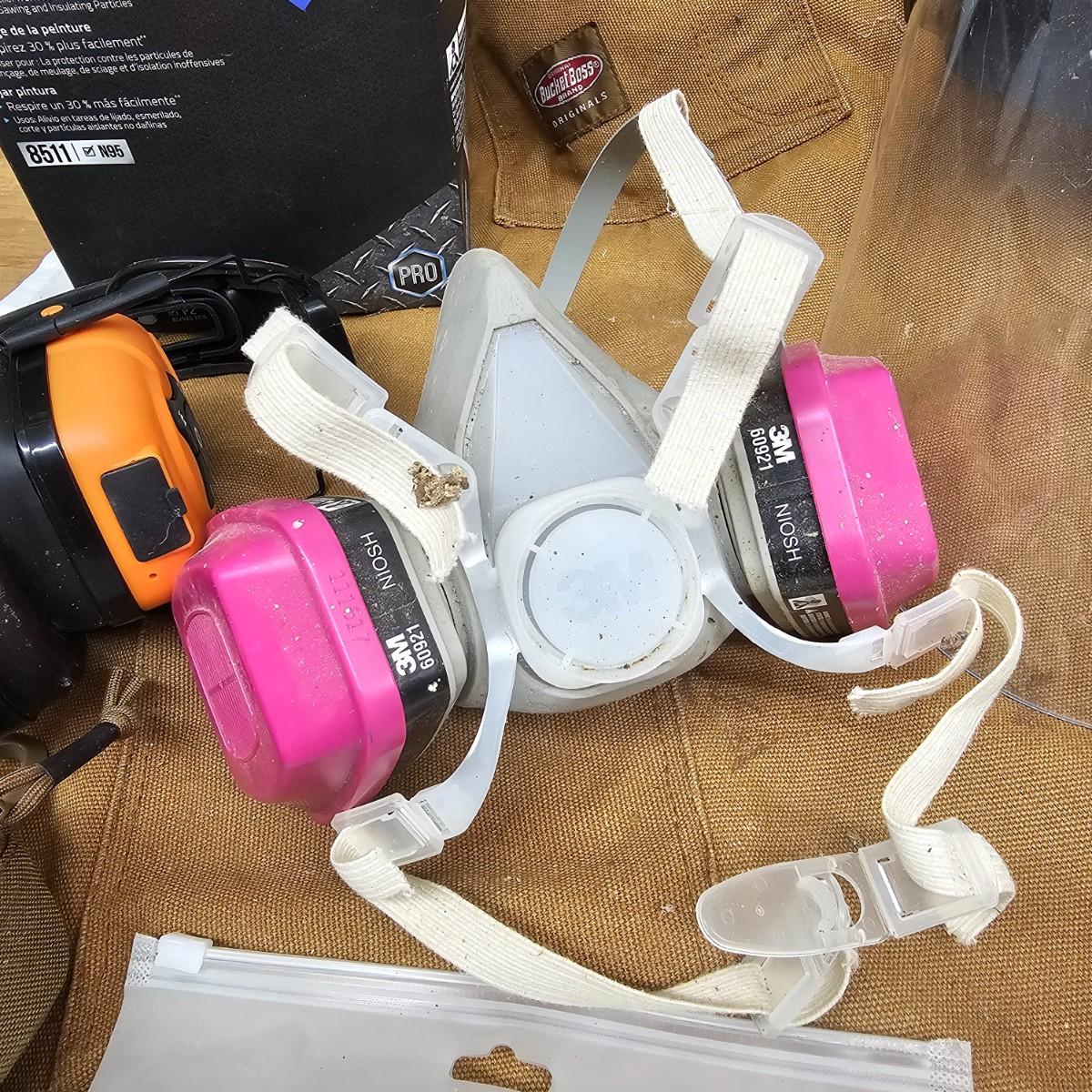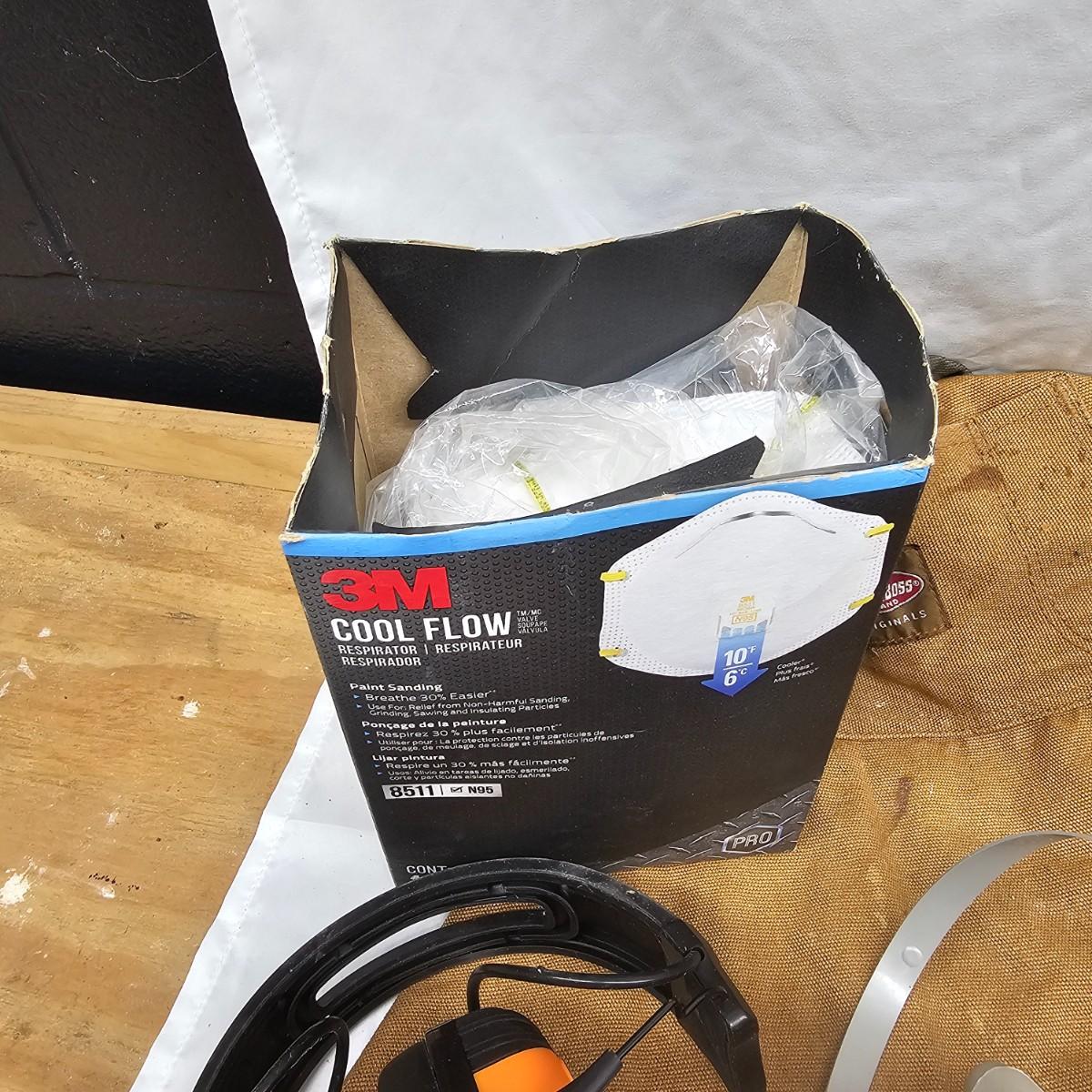 Work gloves, masks, respiratory, face shields and more. Two work aprons, one leather and one canvas. Knee pads, goggles, hearing protection. Hard shell first aid case with bandaid, compresses, cleaners and more. Box is 11" x 13" x 4"H. Most all items used. See photos for details. Local pickup only.
